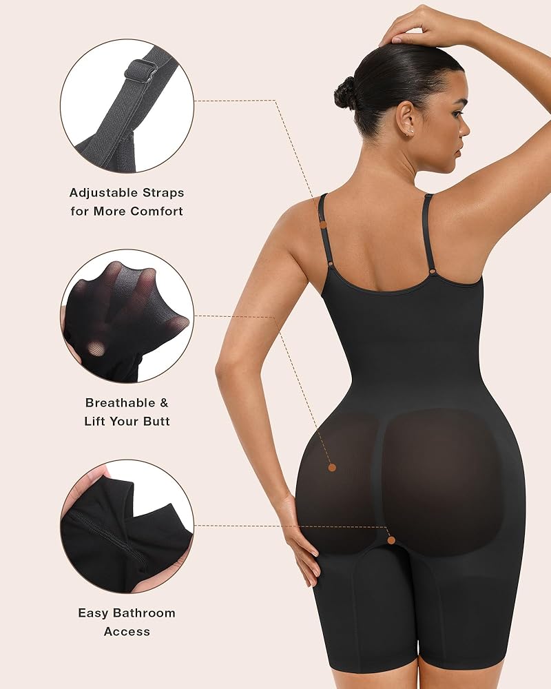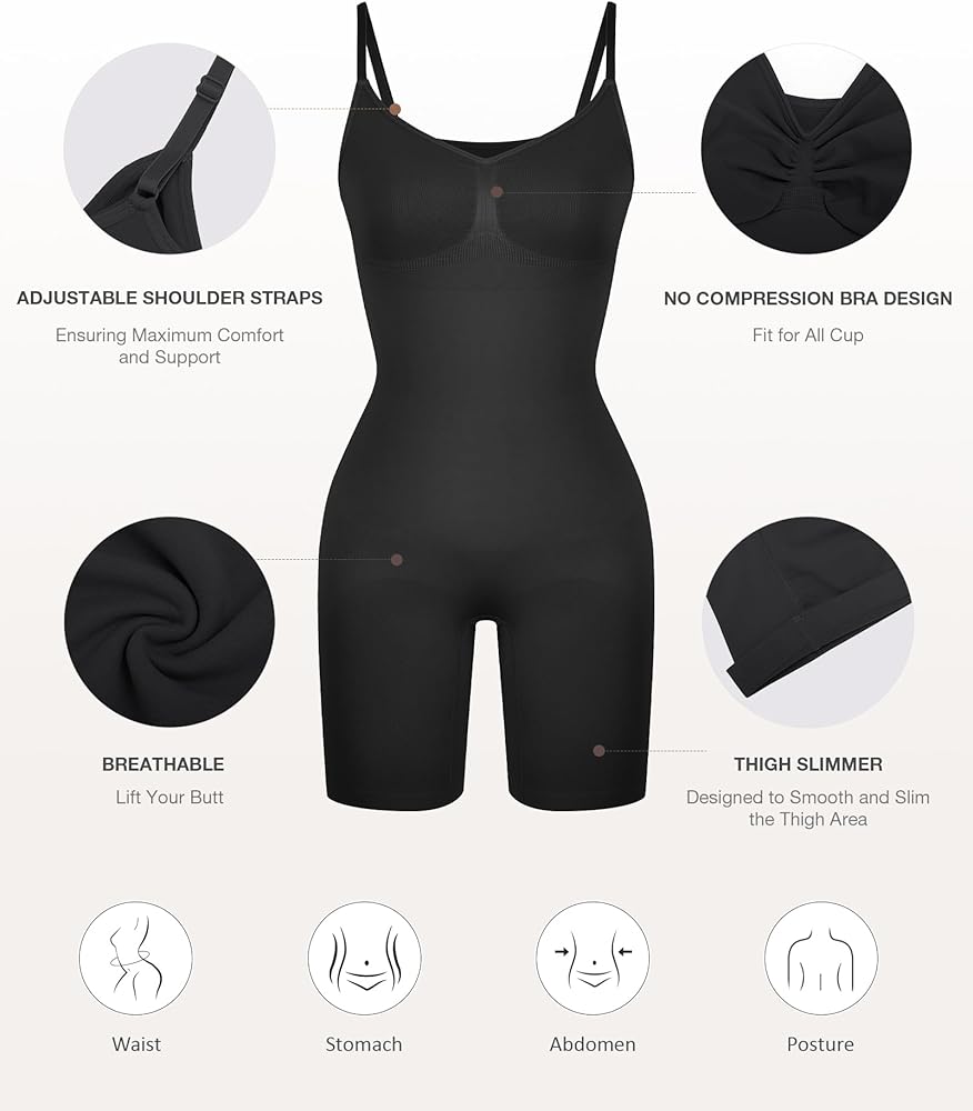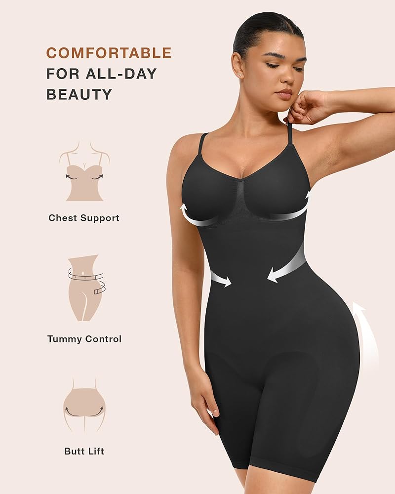 Sizing Tips: To choose a right size, please follow our size chart instead of your usual clothing size. If you are between two sizes, go for a size up. And it is normal that you feel the bodysuit is too tiny or a little hard to wear at the first try-on. That's because we use highly stretchy fabric to ensure its shaping effect.