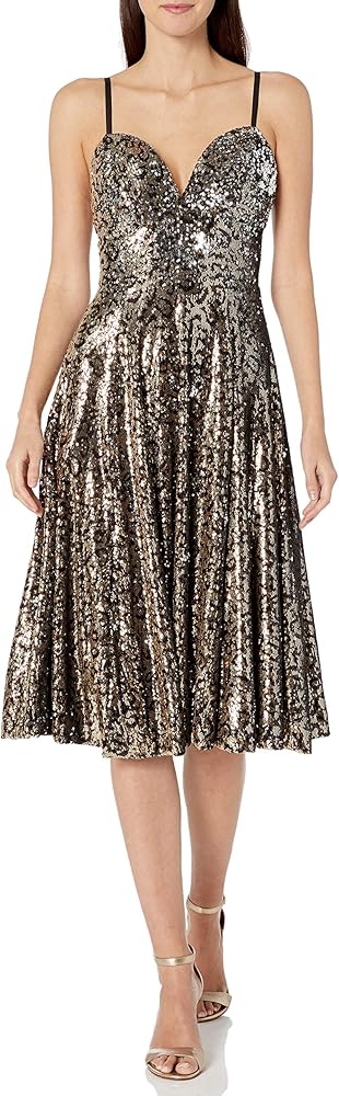 Dress the Population Women's Mimi Sleevless Fit & Flare Sequin Midi Dress