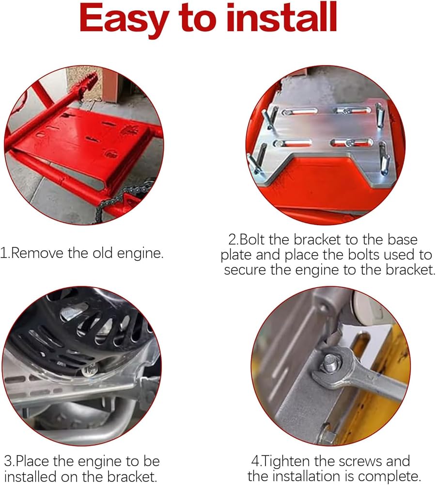 Easy Inatallation: PACEWALKER Motor Engine Mount fits all standard 5/16 "hex head bolts or captive bolts, the adjustable slots on the plate allow for full adjustment so that it can be easily mounted between the base plate and the engine, easy to install