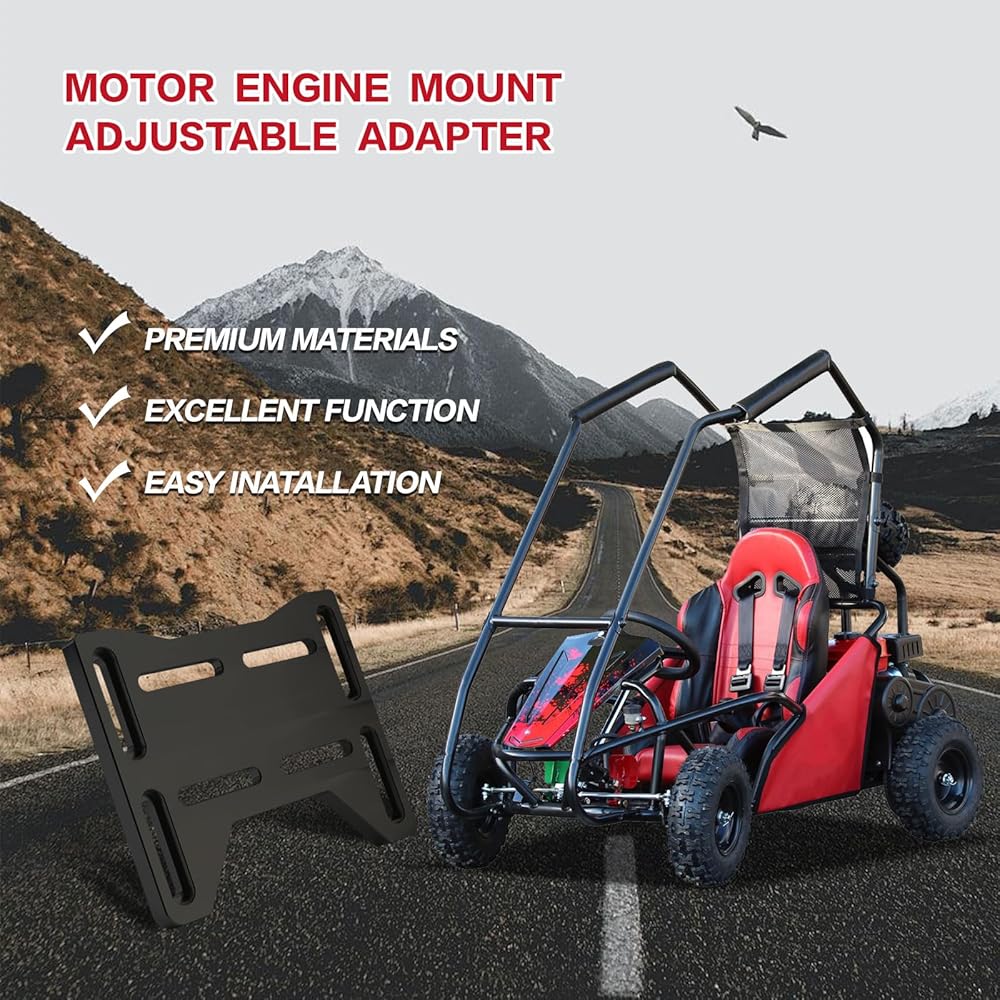 Excellent Function: Adjustable Motor Plate has slots on both sides of the adapter plate which can be adjusted to different angles and mounted directly between the base plate and the engine, with slots on the plate for precise alignment of chains, belts, and driveshafts, allowing for upgrading to a larger engine without drilling