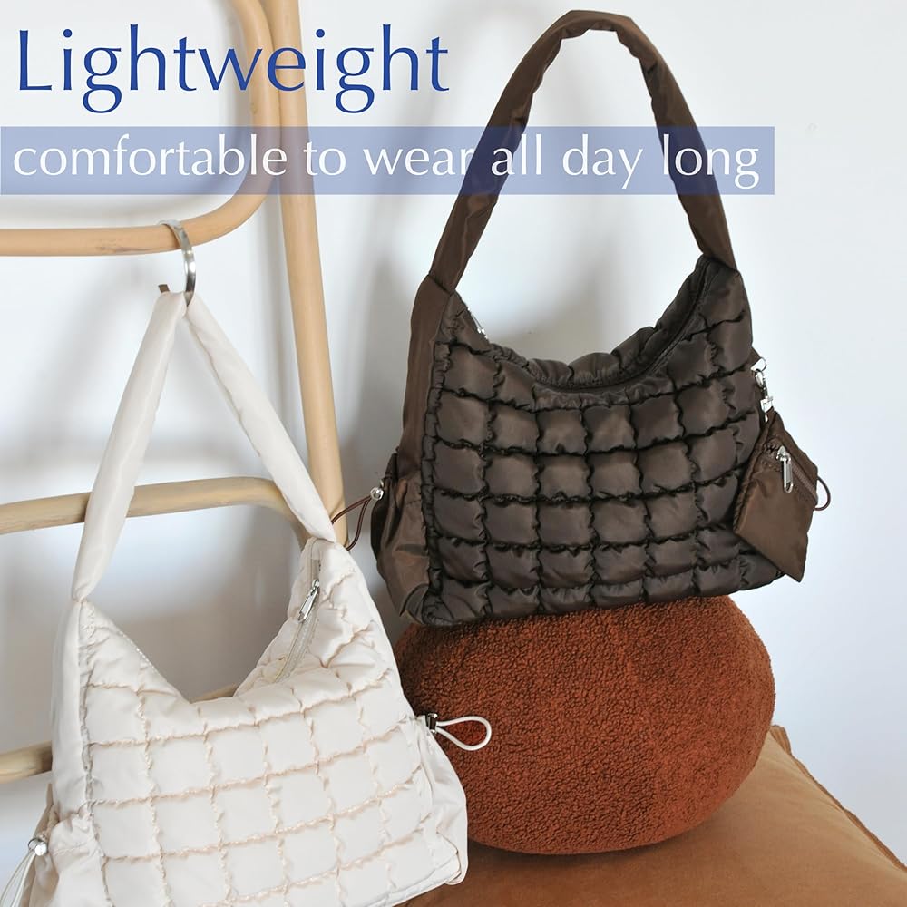 This puffer hobo shoulder bag is designed for women who want to stay stylish and organized while on-the-go. So lightweight,a perfect companion for the modern woman on-the-go.