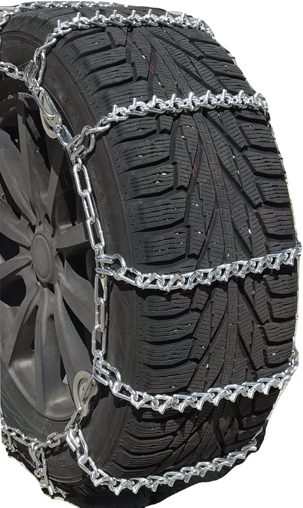 BORON ALLOY 10B21 STEEL LASTS UP TO 83% LONGER THAN STANDARD ROCKWELL 53 STEEL. LONG LIFE AND STRENGTH WITHOUT BEING TO THICK. MEDIUM DUTY TWISTED LINK V-BAR Truck Tire Chain. 15/64 thick. Recommended for over the road, chain law, semi trucks.For plowing or extended use, the Heavy duty truck tire chains below are recommended when available in your size. For easier installation of twisted linkTruck Tire Chains see our Sno-Chain Ramps. Optional rubber or spring tensioners are recommended. If your tires are deep lug, mud, load range E, or AT tires, please contact us prior to purchasing Fits 8.25-15LT 10-15LT 265/70R15LT 265/75R15LT305/50R15 31X10.50-15LT 33X10.50-15 P265/70R16 P265/75R16 245/85R16LT 265/70R16LT 265/75R16LT 265/80R16LT 275/70R16LT 285/65R16 295/50R16LT 235/80R17 245/75R17LT 255/60R17 P255/70R17 P265/65R17 P265/70R17 265/60R17 265/70R17LT 265/75R17 275/65R17 235/75R17.5 245/70R17.5 245/75R17.5 255/65R18 P255/70R18 P265/65R18 255/70R18 275/55R18 265/50R19 275/55R19 225/70R19.5 245/60R20 265/60R20