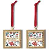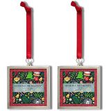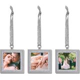 MIMOSA MOMENTS 2-Pack Silver Red Glitter Bling Picture Frame Ornaments, Mini Square Photo Frames for Christmas Tree, Wedding & Holiday Decor, Hanging Ornament with Red Glitter Mat