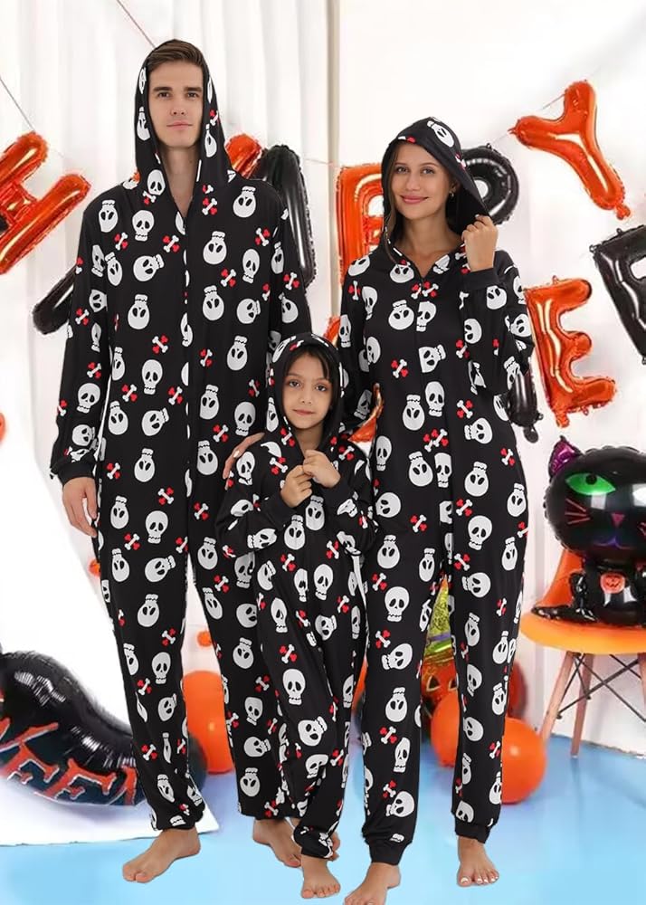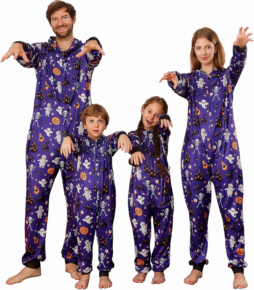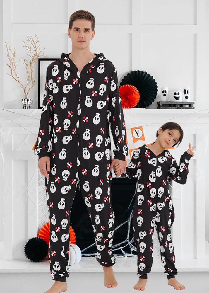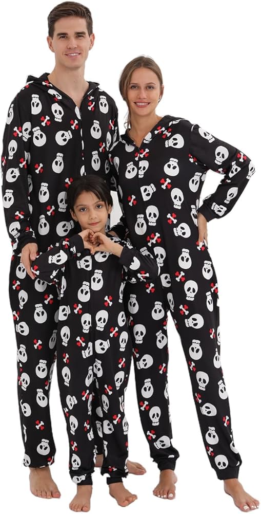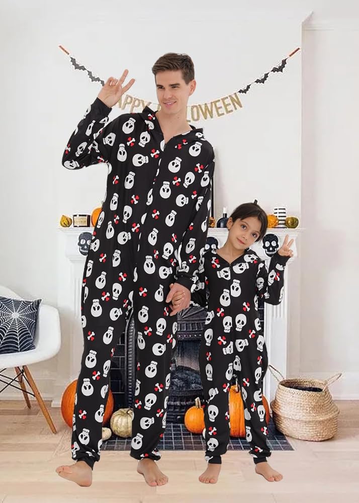 ❁Onesie Adult In Festive Fashion❁ These family halloween pajamas are made to inspire smile and laughs for many Halloweens to come. Perfect for cosplay party, dress-up, Halloween day, theme parties, Halloween skeleton dress up parties, spooky and scary Halloween, horror movie themed party, goosebumps party, Jack Skellington theme parties, day of the dead costume, masquerade, monster costume, cosplay event, theater plays, suitable for wear it during family game night or slumber party.