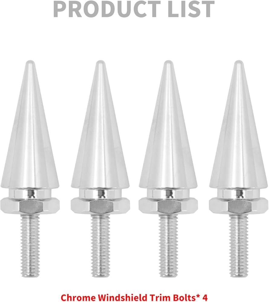 Windshield Spike Bolts Motorcycle Fairing Bolts Windscreen Trim Screws Windshield Bolts Fit for Harley Road Glide 2015-2023 4 PCS (Color:Chrome)