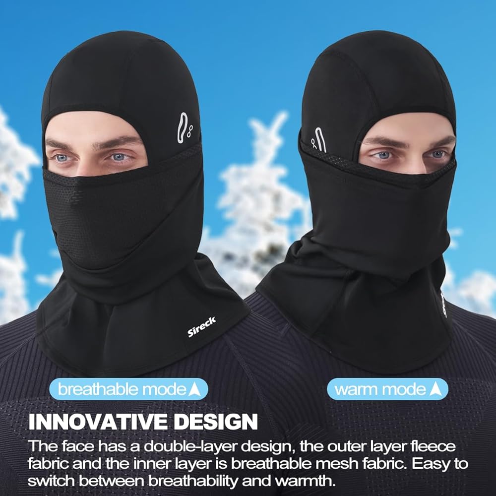 BREATHABLE DESIGN- Add an extra warm and windproof band to the face, and open a slit at the nostrils for smoother breathing. This design ensures that the face will not freeze during drinking water and intense exercise.