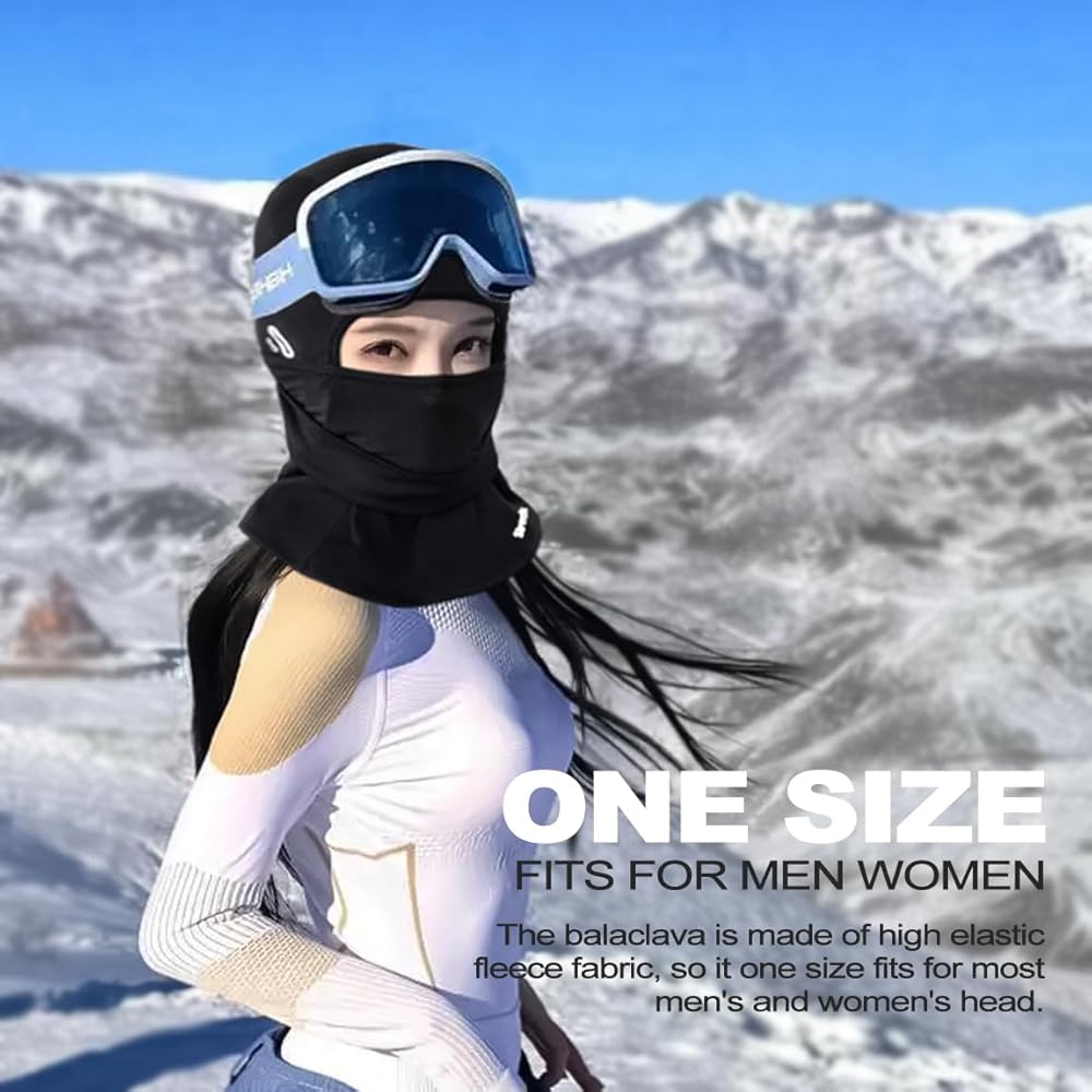 SIZE - This winter balaclava full face mask is made of elastic fleece fabric, so it one size fits for most men's and women's head.