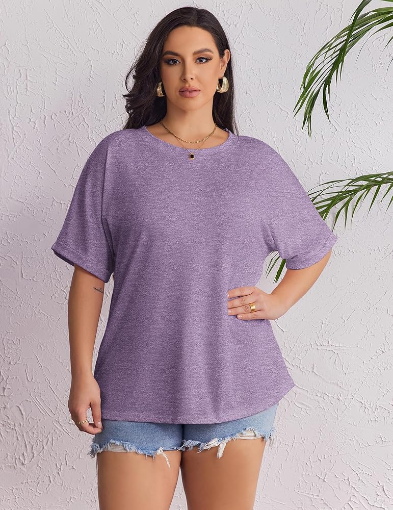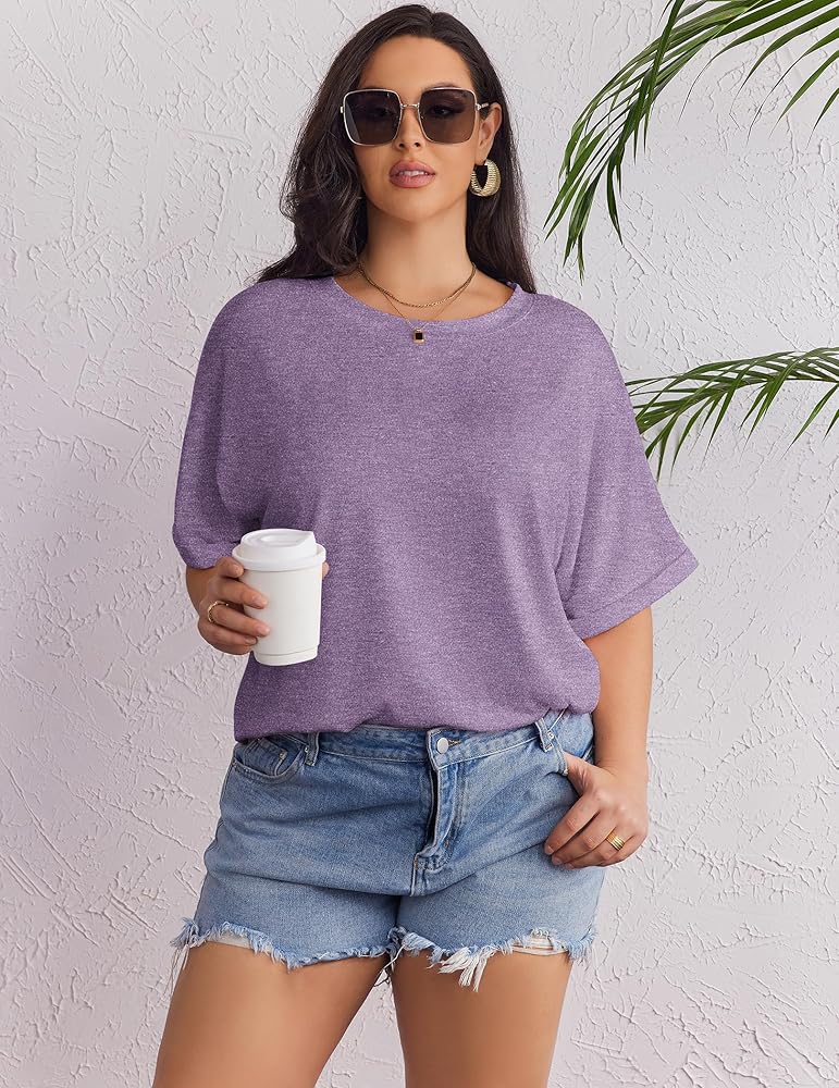 Premium Fabric:The plus size casual short sleeve tunic tops is made of 76% polyester,19% viscose and 5% spandex.It is soft,skin-friendly and lightweight fabric that makes you feel comfy, casual, and loose, and this material not easy to shrink after washing, not pilling, not see through.