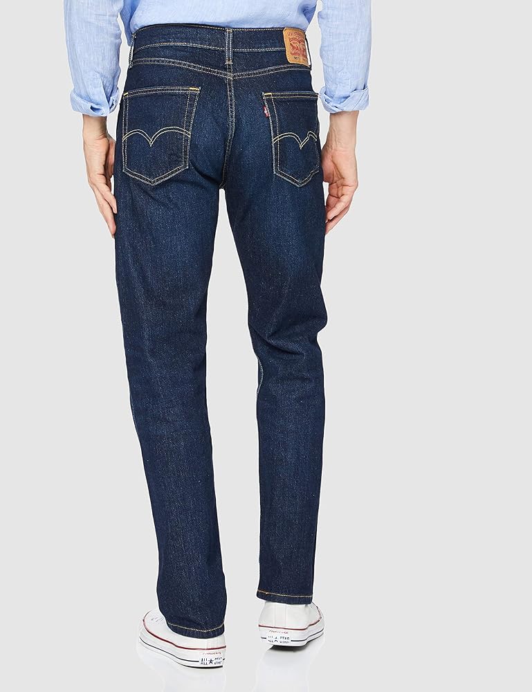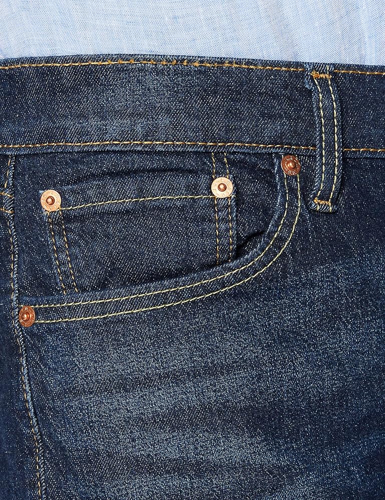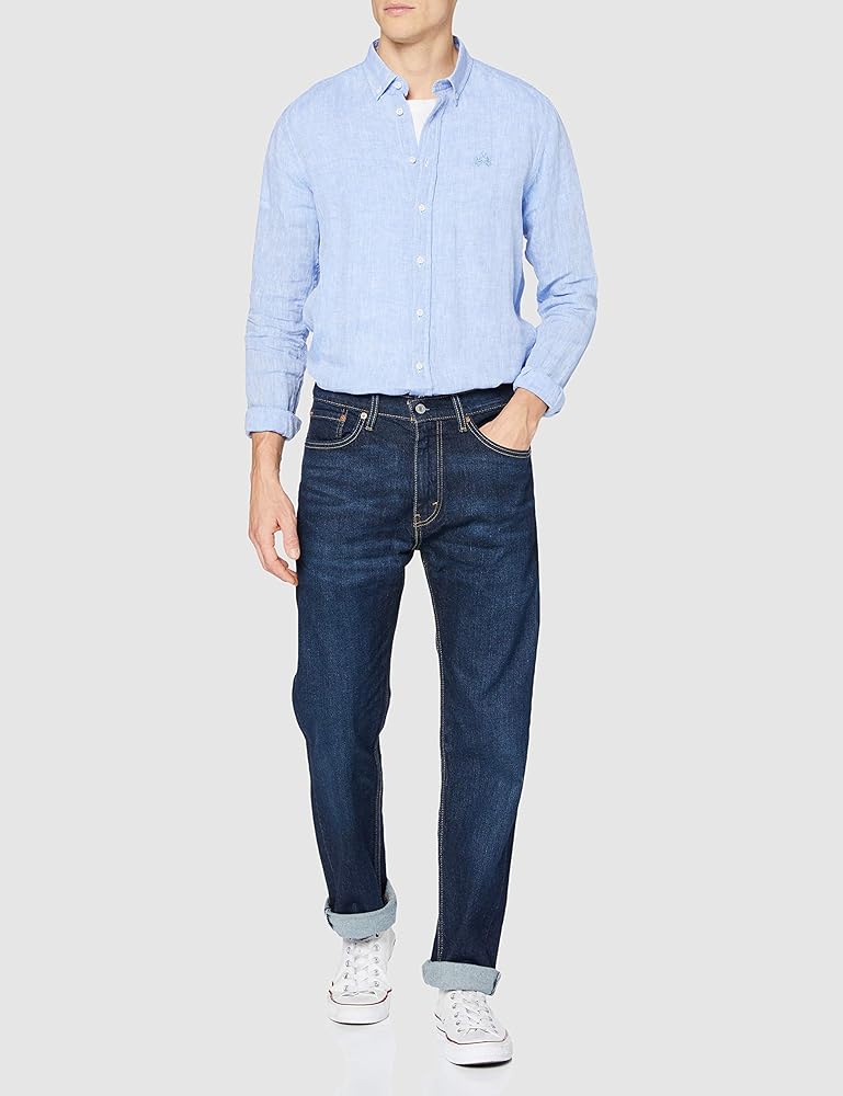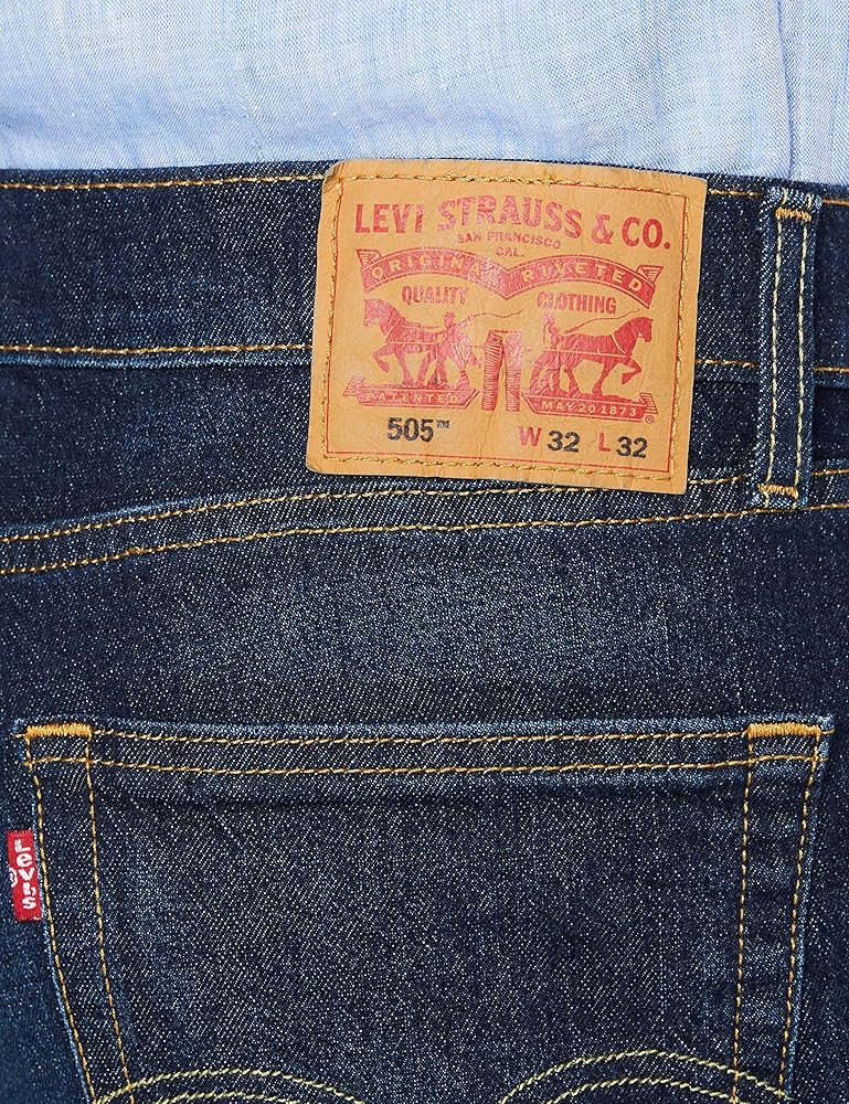 The classic Levi's Mens 505 Regular look that's always in style. 505 jeans fit comfortably straight through the seat, thigh and leg. Straight-cut waistband sits at the waist. Sits evenly on both the front and back. Classic, five-pocket design. Branding-stamped rivet and shank button-detailing. "Levi's" or trademark-branded red tab at back pocket. Leather brand patch at back waist. Signature arcuate stitch at back pockets. Belt-loop waistband. Zip fly and button closure. 100% cotton except on noted washes. Nail Loop Knot, Birdman, Clif, Goldentop, Hawker, Stonewash Stretch: 99% cotton, 1% elastane. Afrobeat Stretch, Caraway Slub Twill 1, Cash, Moss Black Overdye, Navarro: 98% cotton, 2% elastane. Flying Bird: 99% cotton, 1% elastane. Kansas: 94% cotton, 5% polyester, 1% elastane. Roth: 88% cotton, 11% polyester, 1% elastane. Machine wash cold, tumble dry low.