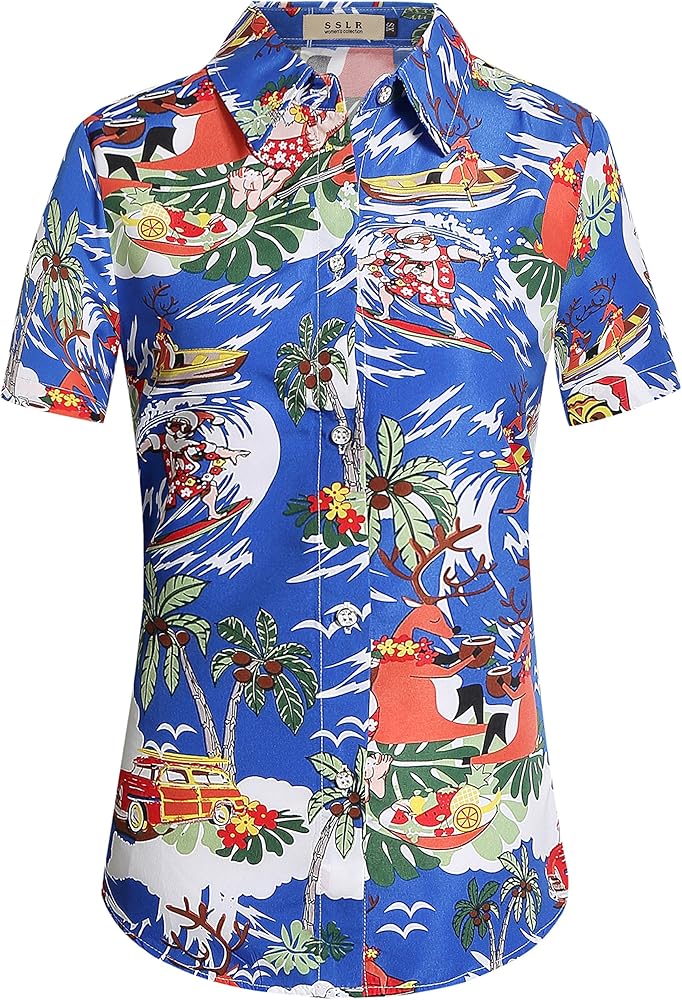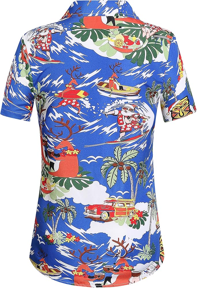 Premium fabric: Our Christmas womens hawaiian shirt is made of lightweight polyester fabric, quick-dry, durable super and is highly comfortable to wear. The short sleeve length is just perfect for Christmas parties! Look and feel super cool.