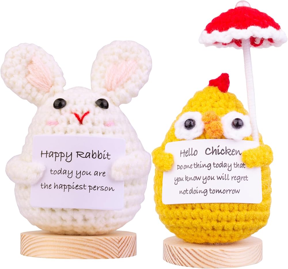 🍆Unique Design: These knitted dolls are not only designed in different shapes, such as cucumbers, potatoes, carambola, pineapples, toast, pineapples, penguins, eggplants, etc. they are cute and funny, but also the positive encouragement words on the front of the crochet dolls can give you small encouragement when you are tired or sad.