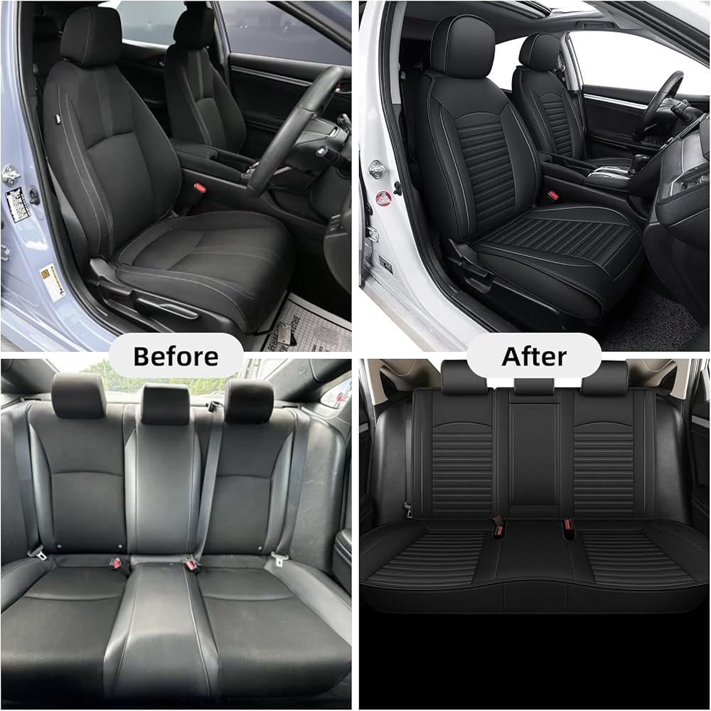 Seat Covers Fit for 2016-2025 10th Gen - 11th Gen Honda Civic - 1:1 Custom Waterproof Luxury Leather Car Seat Covers - Compatible with Airbag & Easy to Clean (Full Set, Black)