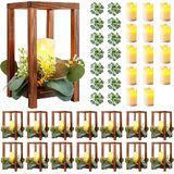 Perfect Size of Wedding Wooden Lanterns - The package come with 14 pieces of wooden lanterns、14 Flameless LED Candles 、14 Eucalyptus Leaves Wreath, each lantern holder is about 5.51 x 5.51 x10.03 inches (L x W x H),The LED Candles are about 2.44 x 4.92 inches, Eucalyptus Leaves Wreath outer diameter about 7.87 inches.