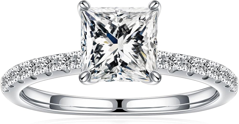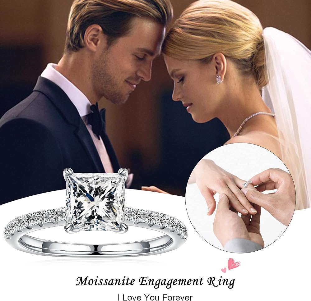 HIGH QUALITY MATERIAL: All products are selected laboratory-made D color VVS1 clarity high quality moissanite. 100% made of S925 sterling silver, plated with 14K white gold, lead-free and nickel-free, high-gloss polished, smooth and shiny.