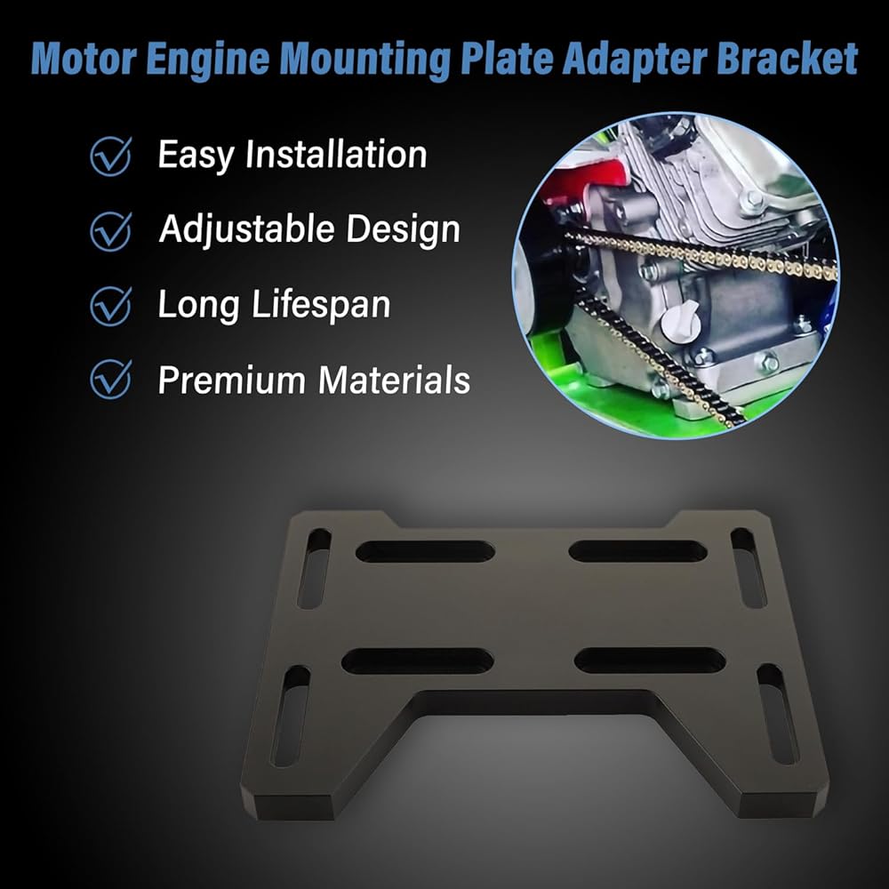 Easy Installation:The engine mount adapter bracket comes with all necessary hardware and tools. The adjustable slot on the board allows you to easily install it between the base plate and the engine