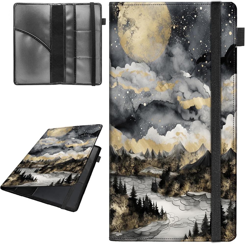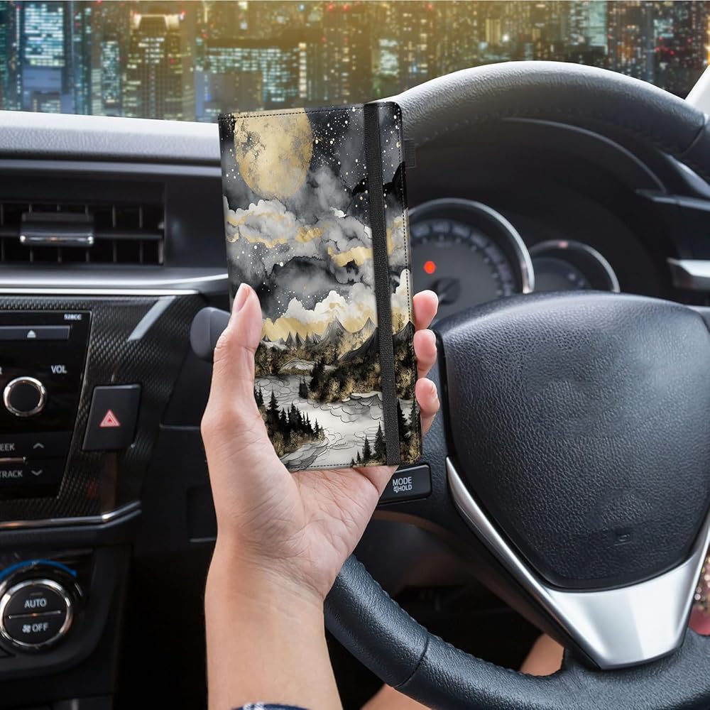 Car Registration and Insurance Holder,Leather Vehicle Glove Box Organizer Wallet for Document,Perfect for any Car,Truck,Motorcycle,Driver License,Trailer or Boat,Men & Women,Moon and Forest