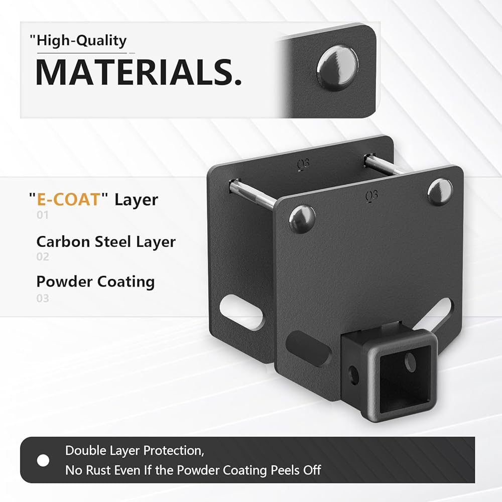 【Durable and Corrosion-Resistant】- The hitch receiver is treated with a durable black coating to guard against corrosion and damage. This protective coating boosts its longevity and ensures it can withstand harsh weather and road conditions, extending the life of the hitch.