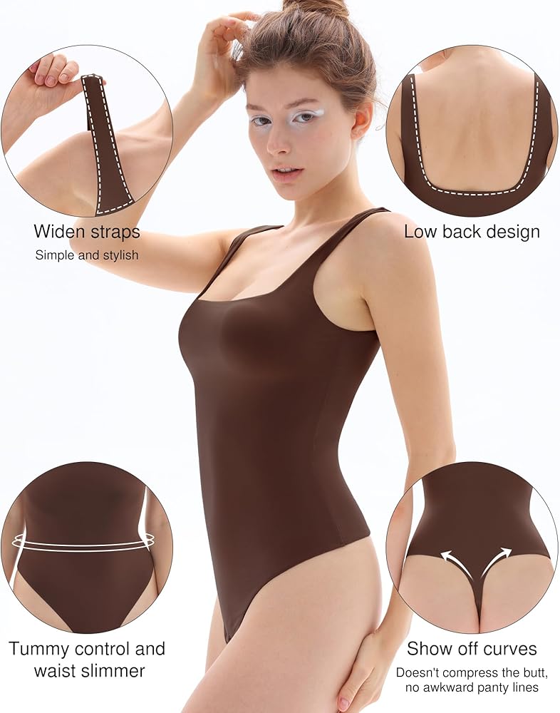 FLAWLESS DESIGN. The Popilush body shaper bodysuit features a square neckline with wide shoulder straps, which is comfortable to offering a sleek and seamless look under any outfit. The bodysuit enhances your natural curves, providing a more streamlined appearance. The snap-button crotch design makes it easy to wear and convenient for bathroom visits.