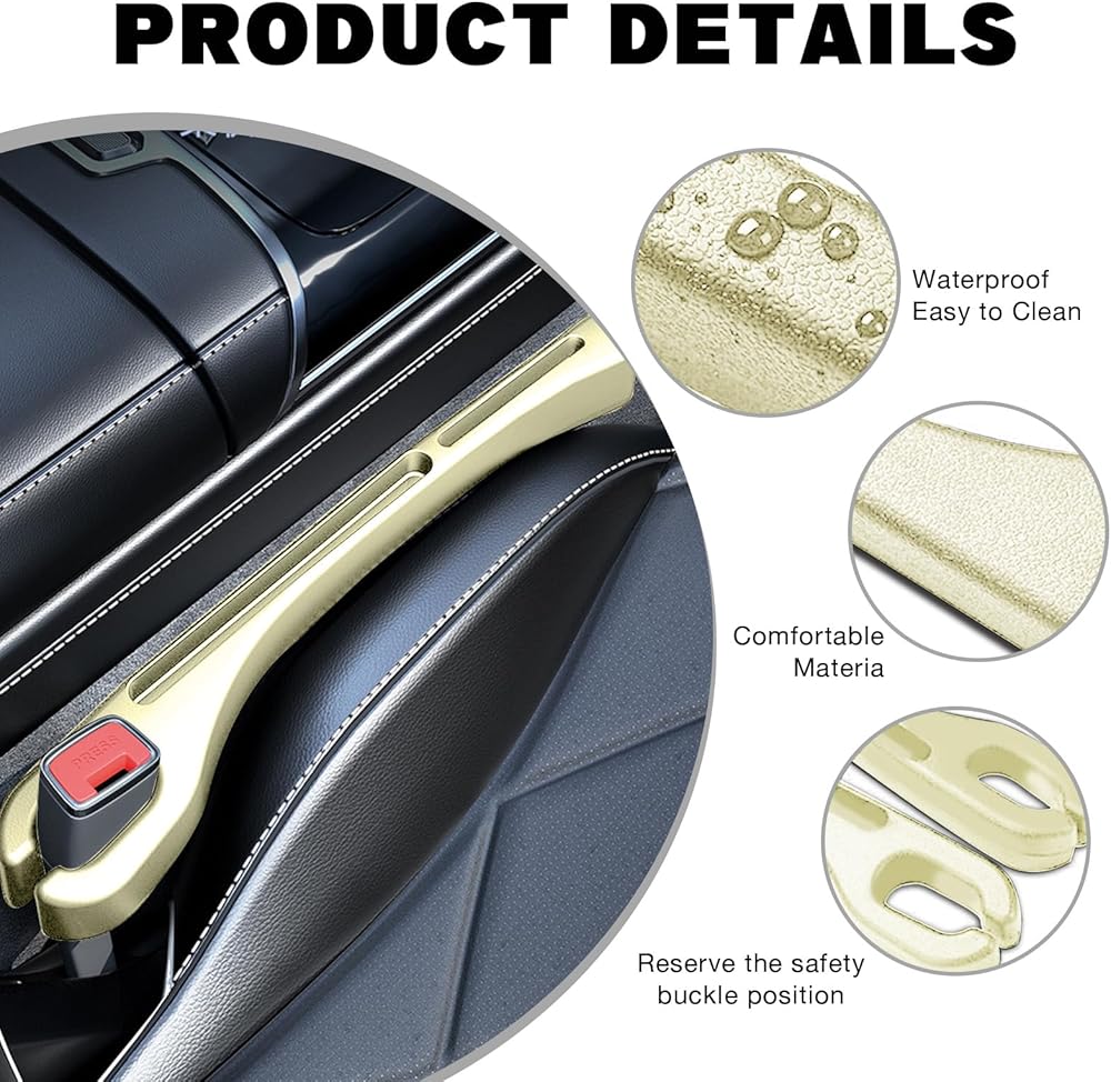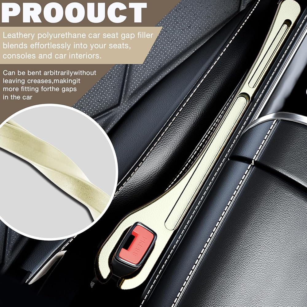 Practical Design- car seat gap filler will effectively prevent cellphones, keys, coins, and other small items from slipping into the dreaded car seat gap. Bid farewell to cluttered seats and missing objects.High Quality Material - Our gap filler is made of premium PU leather material with a soft and flexible sponge interior., it will not cause any damage to your car seat.Easy to Install- Inserting the car gap strip into the space between your seat and the center console takes just a few seconds, and simply wipe with a rag.Perfect Gift- They make for a practical and considerate gift for your family and friends, whether it's a holiday, birthday, or any special occasion.