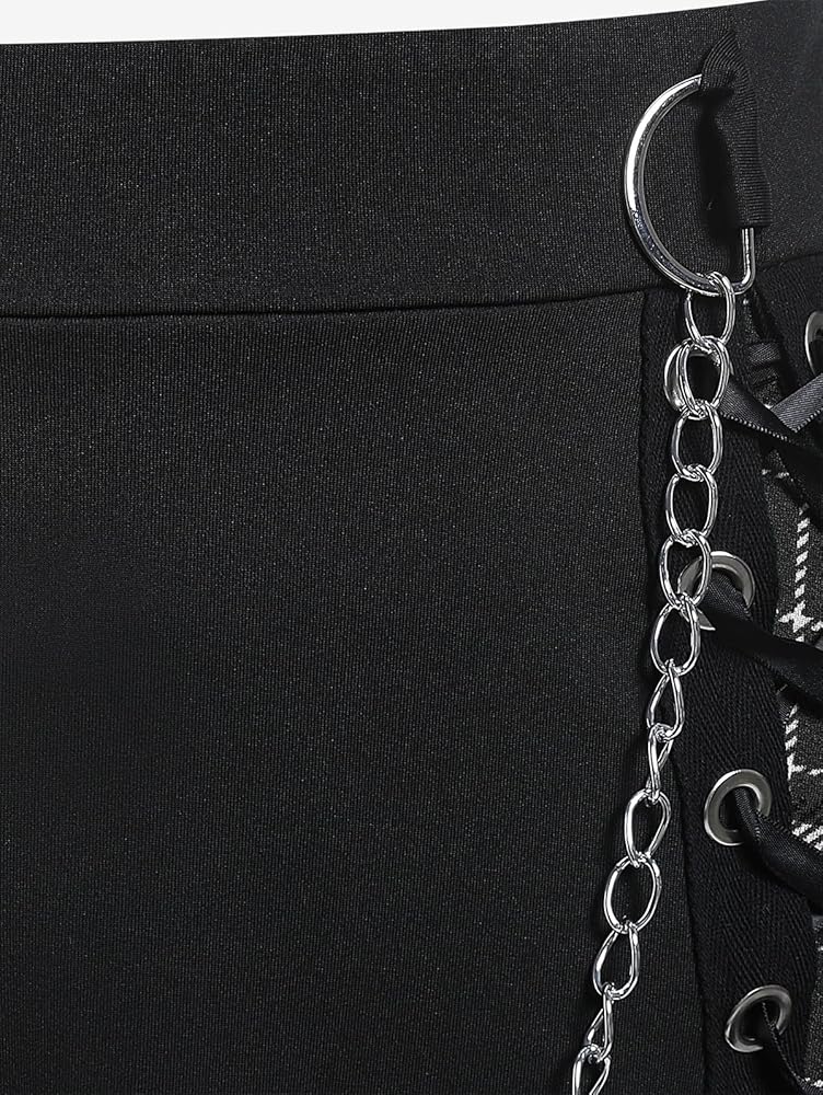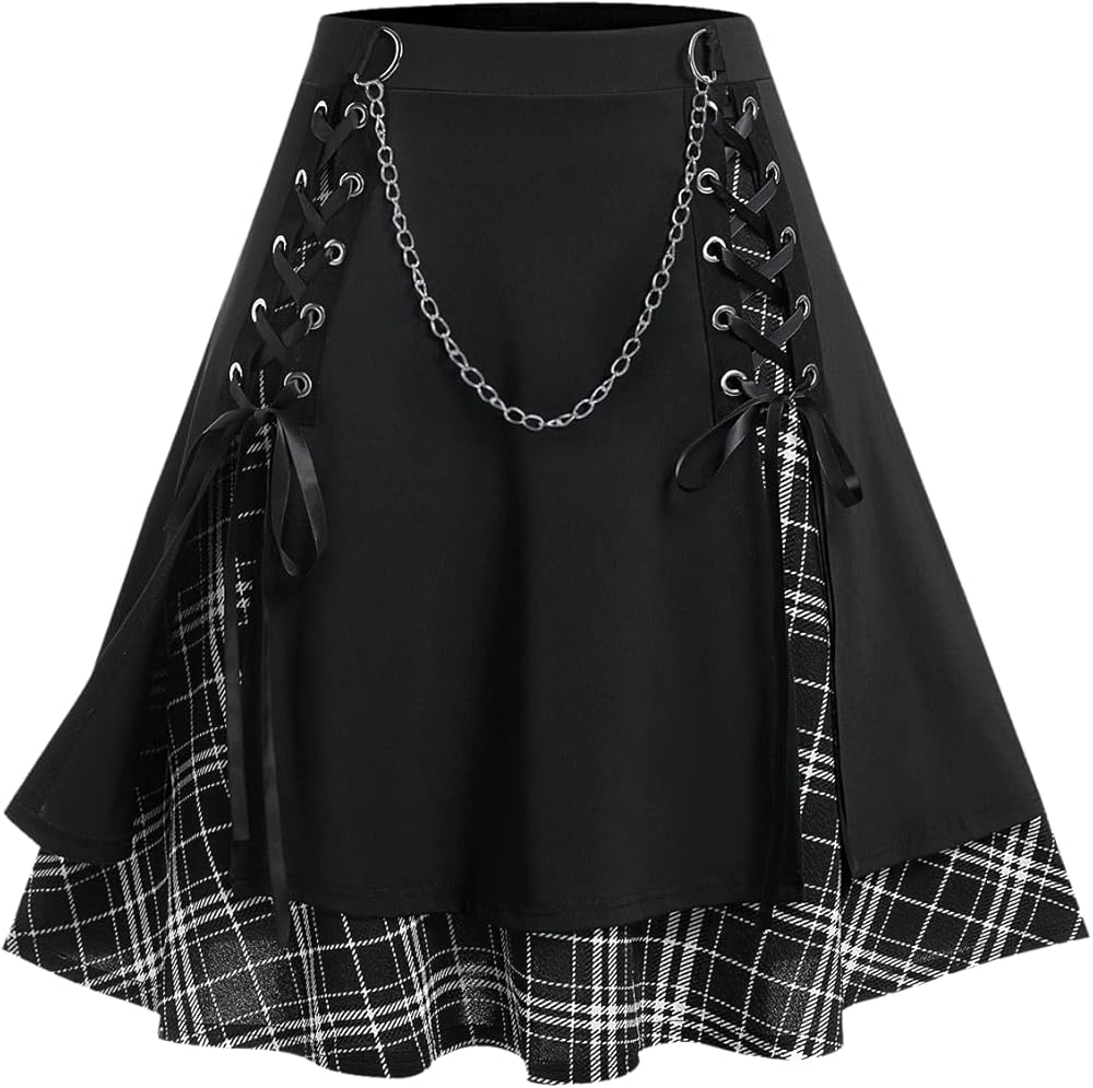 Design- Plus-size waist pleated skirt with chain. High waist tie skirt, E Girl Skirt, Detachable chain, Plain color, Mini skirt.