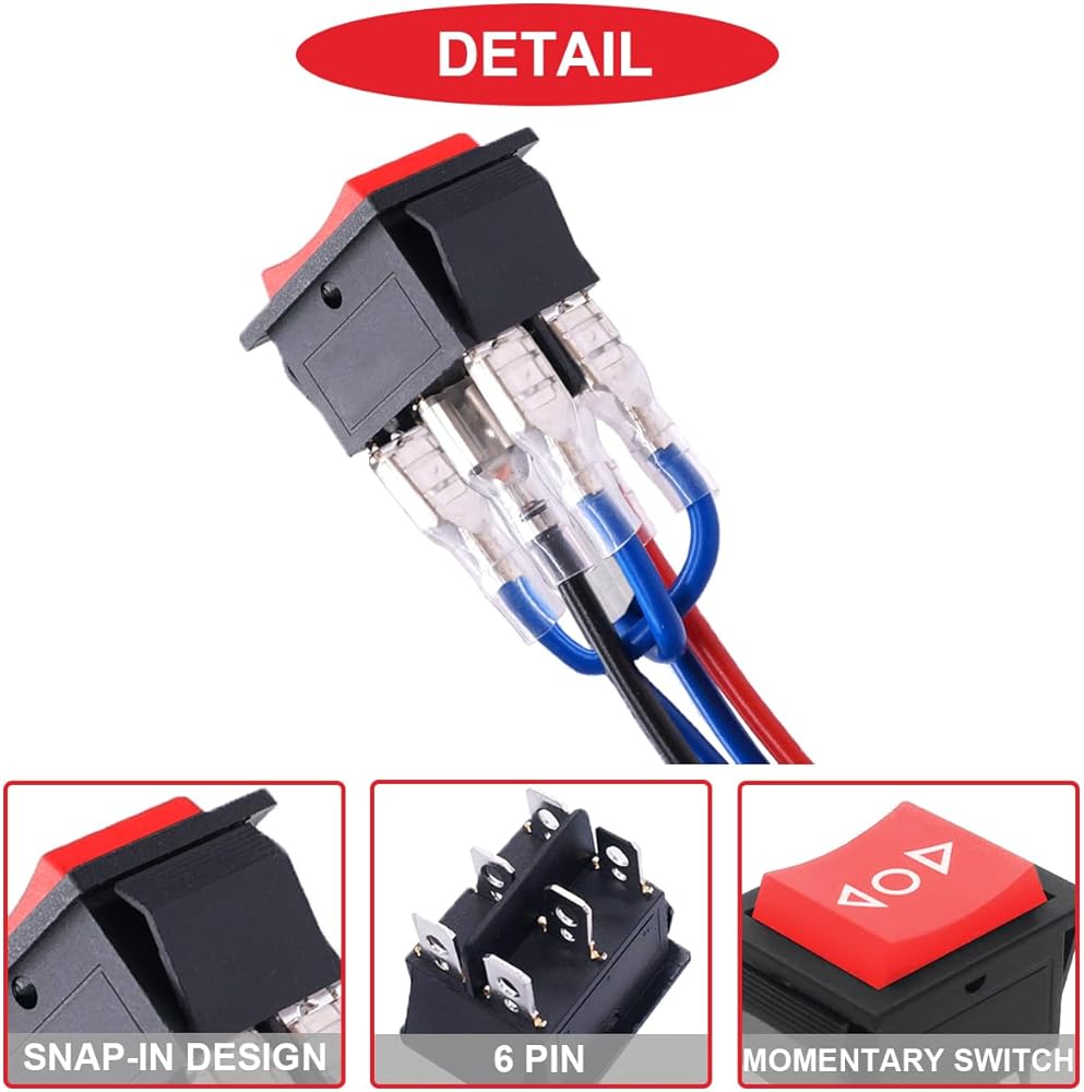 3Pcs Momentary Motor Polarity Reverse Rocker Switch Red DC 20A 12V DPDT 6Pin 3Position (ON)-Off-(ON) Automatic Reset Switch 16A 250V AC/20A 125V AC Rocker Switch with Jumper Wires for Boat