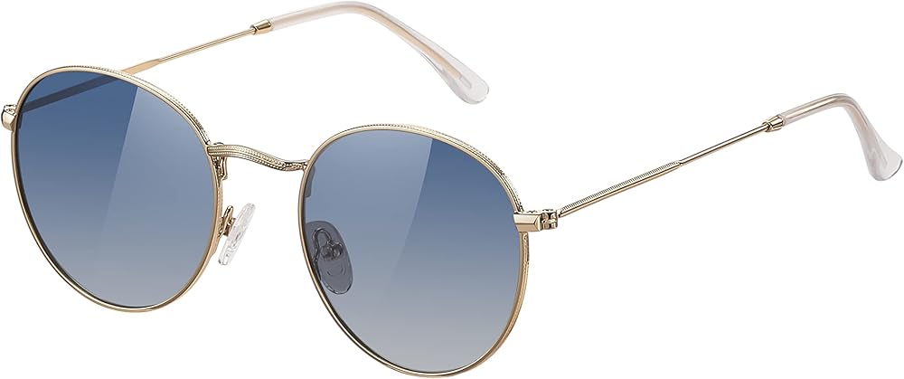 classic round sunglasses perfect for both men and women. The minimalist design exudes elegance and adds a touch of individuality to your style. Crafted from premium metal material, these sunglasses are sturdy and durable, yet lightweight and comfortable for extended wear. The high-quality TAC lenses provide 100% UV protection, effectively shielding your eyes from strong sunlight and harmful rays. Choose from a variety of lens colors, such as black, gray, and brown, to suit your style and personality. The package includes a microfiber cleaning cloth, non-slip nose pads for added comfort and convenience. Upgrade your style game with these timeless and versatile round sunglasses.