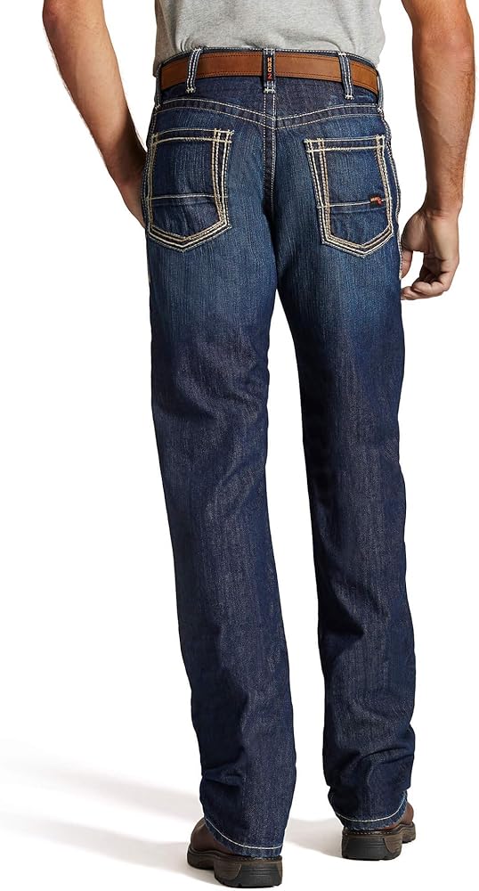 Ride, ranch or work with confidence by wearing the Flame Resistant M4 Low Rise Boot Cut Jeans for men. Featuring a design that is relaxed through waist, hip, and thigh, this comfortable and durable workwear is sure to create a style statement while holding up to anything you put them through. Made of ri ng-spun denim, these men's jeans are machine washable using cold water and a light spin cycle. These western inspired bootcut jeans are CAT 2, NFPA 70E, NFPA 2112 and ATPV 20 rated and feature anchored belt loops, no-rub inseams for rash-proof wearing comfort and are fitted with heavy-duty zippers and hardware. It has handcrafted pocket designs with embroidered stitching that add more character. These have a stackable design that lets you create over-the-boot silhouettes. These flame resistant, self-smothering work jeans are 25% more breathable, have a 35% faster drying time and 3-5 times improved moisture wicking capabilities to keep you feeling dry, cool and comfortable through even the hottest work environments.