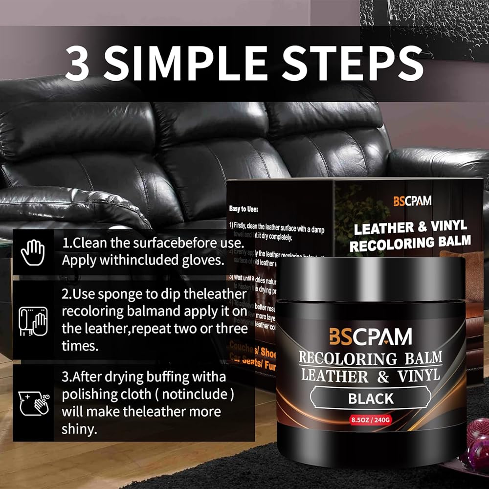 Black Leather Recoloring Balm,Leather Couch Scratch/Stain Remover,Leather Repair kit for Vinyl Furniture and Car Interior,Leather Dye Paint for Scratched and Faded Leather Couches