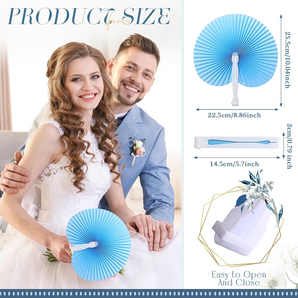 These accordion fans are made of paper and plastic handle. They are very lightweight, easy to open. And the proper size is convenient for you to store and carry when going out.