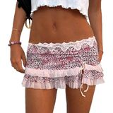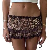 Unique Design: Low rise, lace trim, leopard. Women sexy low waist leopard skirt, women patchwork lace trim pleated skirt, y2k leopard lace min skirt for women, women leopard tiered layered underskirt, women summer flowy fairy skirt 2025.