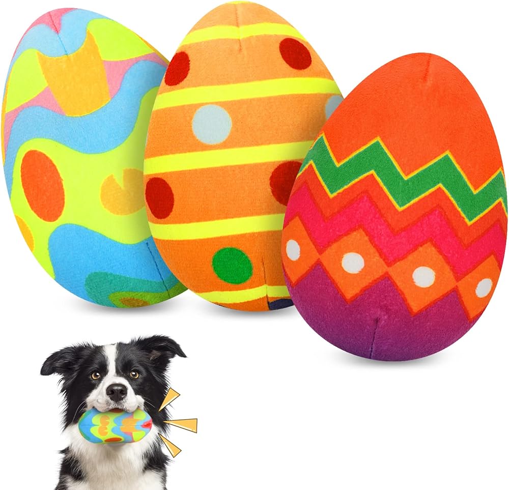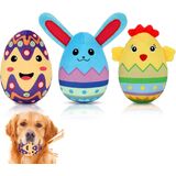 YUEPET 3 Packs Easter Egg Dog Toys, Squeaky Dog Chew Toy for Cleaning Teeth and Relieving Anxiety, Plush Puppy Toy Easter Gifts for Puppies Small Medium Dogs(3 Eggs)