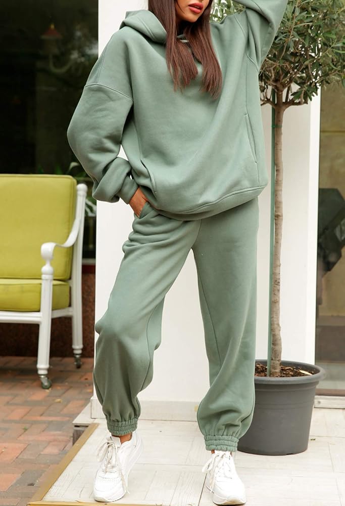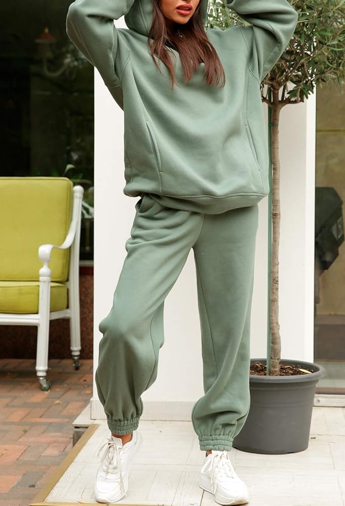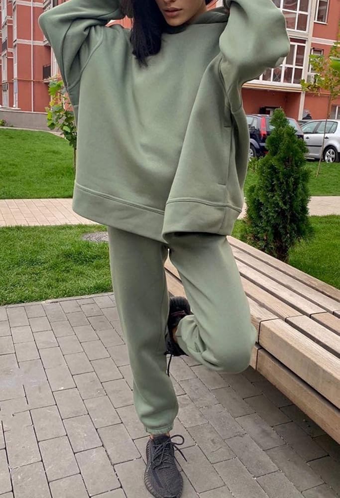 Linsery Sport Hoodie with Jogger Sweatpants Tracksuit Hooded 2 Piece Workout Set Sweatshirt Matching Jogging Suit Green XL