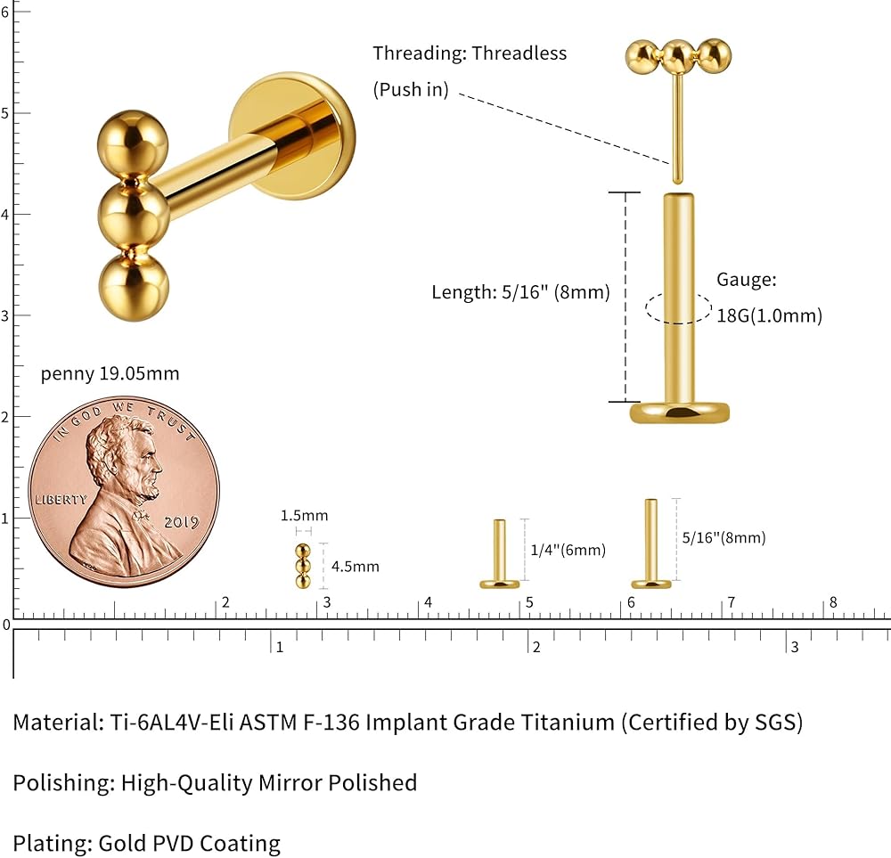 4. [ Feature ]: ASTM F136 Titanium and certified by SGS, threadless (Push Pin), hypoallergenic, and 100% nickel-free.