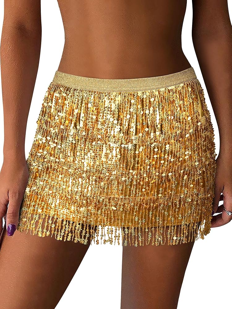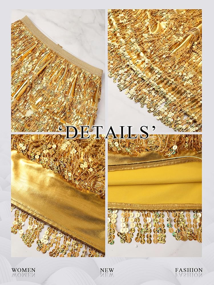 Muti-Layers Sequin Fringe: MYMORE Sparkly Sequin Skirt is distinct from traditional ones due to its four layers sequin fringes.——The fringe sways with your dancing, creating a dynamic effect, while the sequins on its surface perpetually reflect light, helping you dazzle in the crowd.