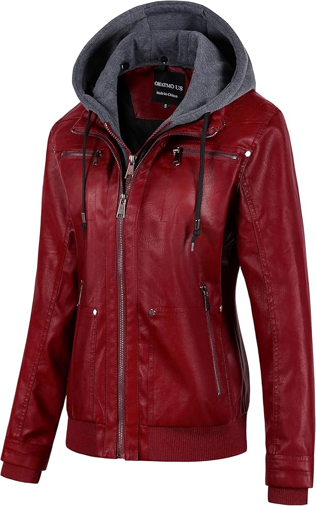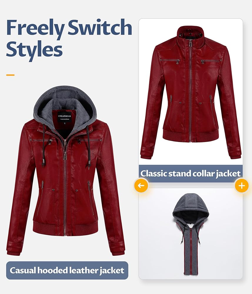 ▶ 2 Style Design: This women's leather jacket has a detachable hood design and can be freely converted between a casual hooded leather jacket and a classic stand collar jacket.It not only meets the warmth needs of daily travel, but also facilitates the easy change of style according to weather changes and occasion needs. Whether it is urban wear or leisure travel, it can be easily controlled and show your charm
