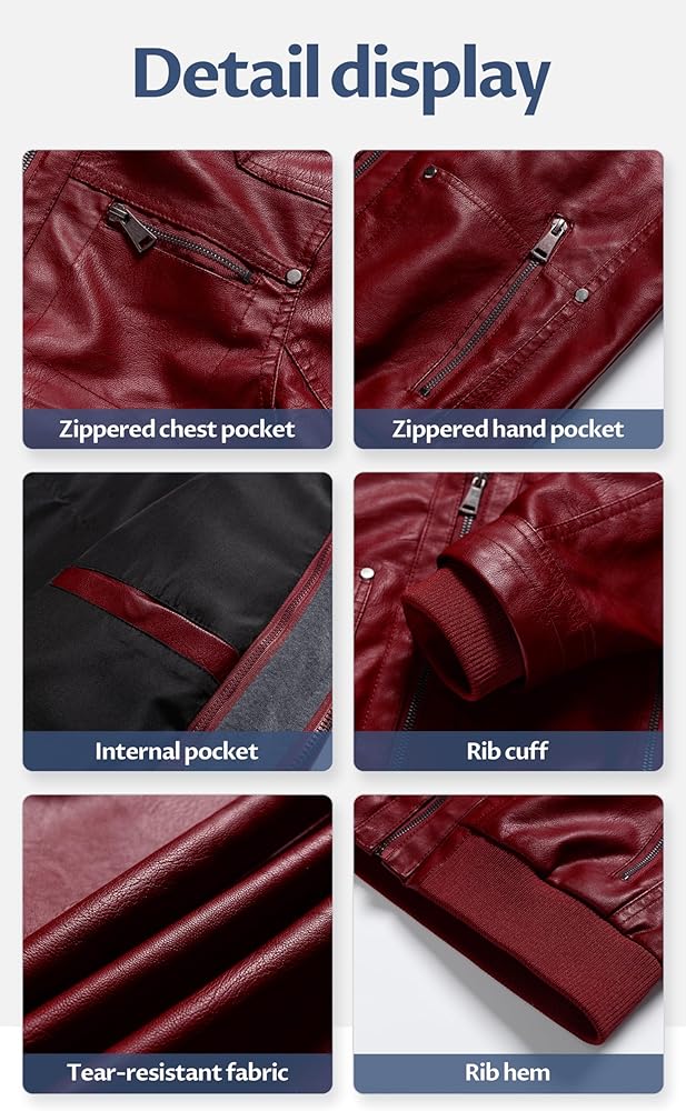 ▶ Multifunctional Pocket, Practical & Convenient: The women's leather bomber jacket is equipped with 5 practical pockets, with 2 zippered hand pockets, 2 zippered chest pockets, and 1 inner pocket. It is not only convenient for you to store your mobile phones, wallets and other belongings, but also to keep your hands warm while ensuring the safety of valuables and making your travel more at ease