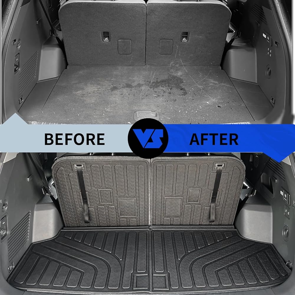 Customized Fit: The cargo mat with backrest mat is designed based on the original car and compatible with 2024 2025 Kia EV9 6&7 seats. It can cover every corner of the trunk well, preventing dust from dirtying the original car.