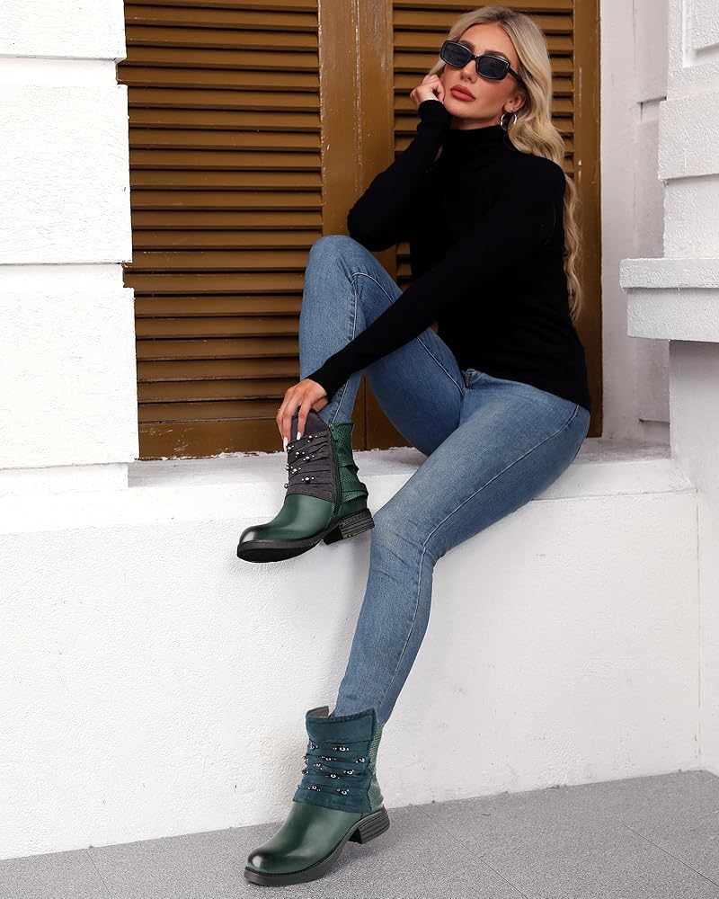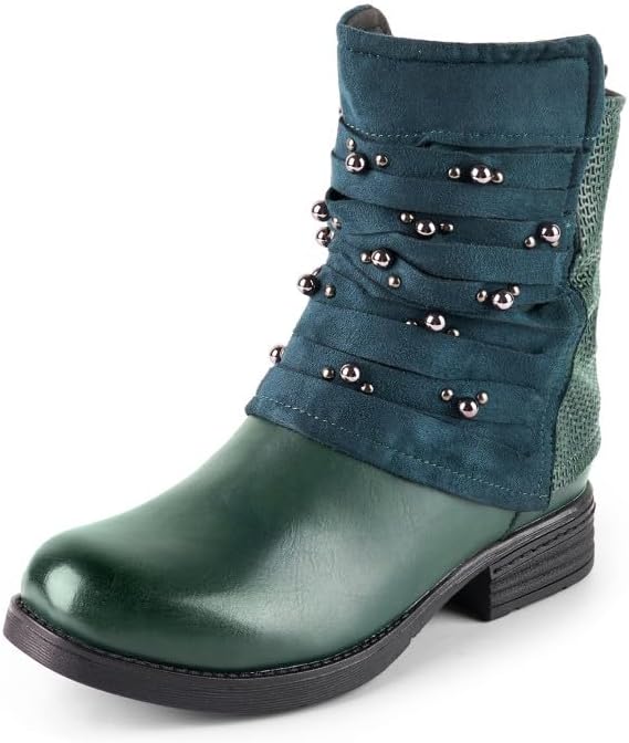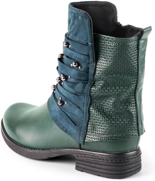 LALA IKAI Women's Combat Boots Motorcycle Ankle Fashion Boots with Studded Low Block Chunky Heels Biker Booties Shoes