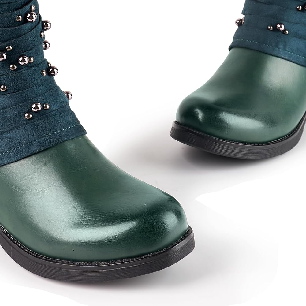 - MATERIAL: Boots for women is leather Upper Made From Man-Made Materials.