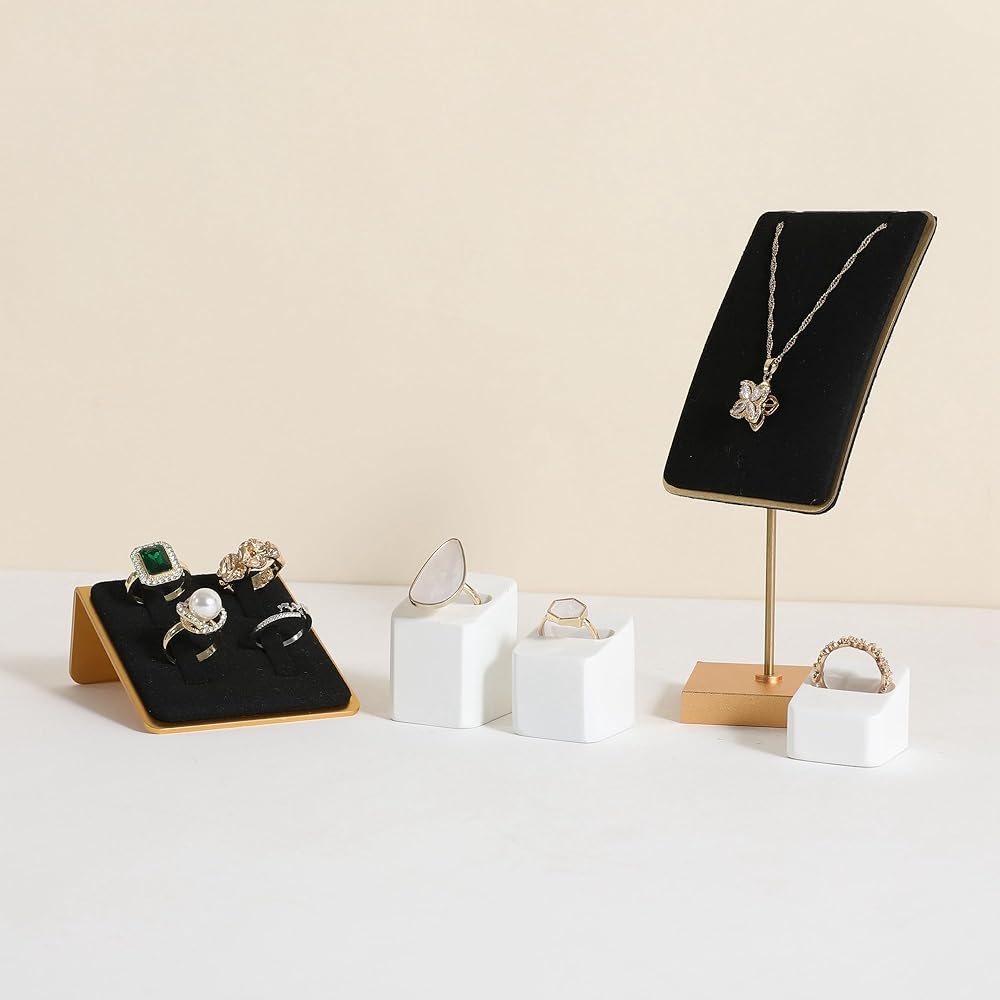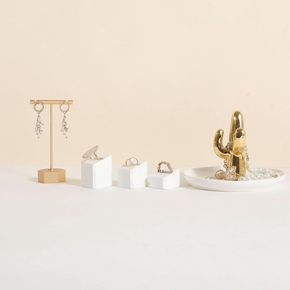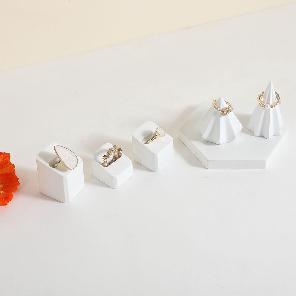 ✔GemeShou 3pcs Gypsum Jewelry ring display stands, rectangle shape, display size (3 L x3.5 W x4.2 cm)/(1.18 L x1.38 W x1.65 H Inch). Please check the size image for details. Jewelry and other photography props accessories are not included.