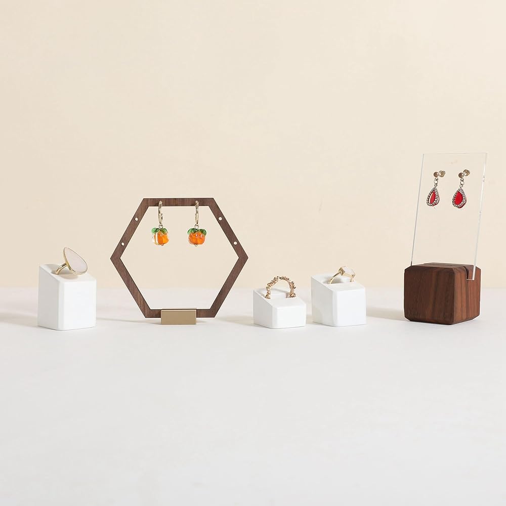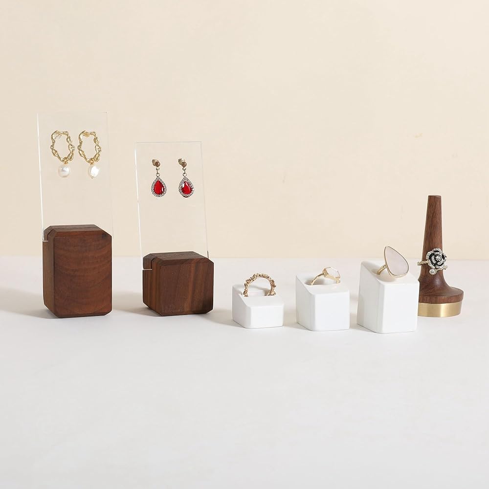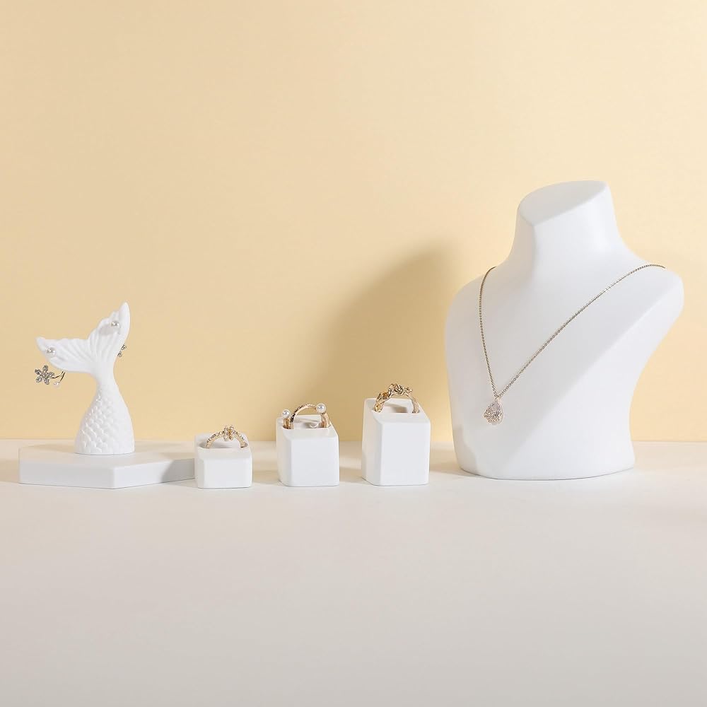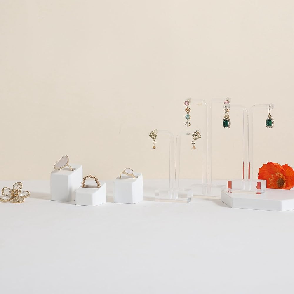 ✔GemeShou 3pcs Gypsum Jewelry ring display stands, rectangle shape, display size (3 L x3.5 W x4.2 cm)/(1.18 L x1.38 W x1.65 H Inch). Please check the size image for details. Jewelry and other photography props accessories are not included.