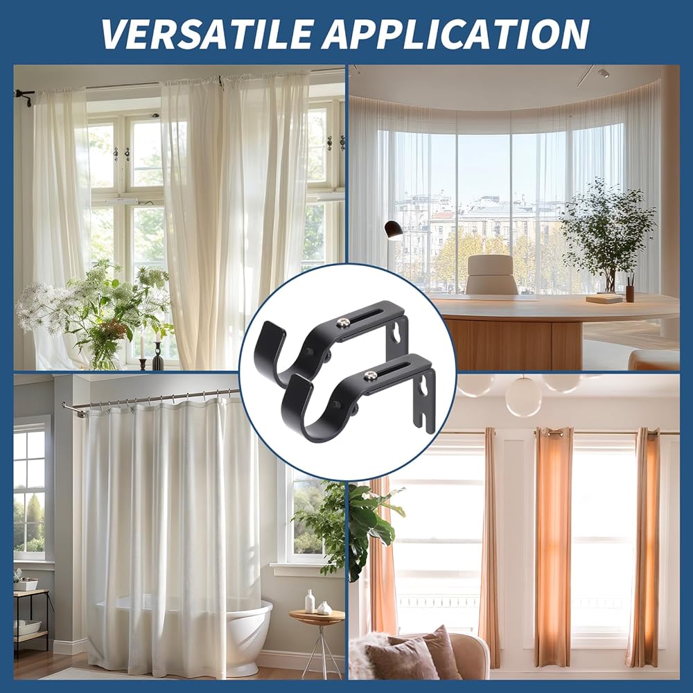 VERSATILE: These adjustable curtain rod brackets are not only perfect for newly installed curtain rods but also serve as an excellent replacement solution for existing rods. They are compatible with various types of rods, including curtain hangers, door curtain rods, shower curtain rods, and can be used for layered or extended applications with blinds. They are the ideal choice for enhancing your home decor