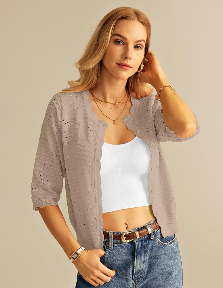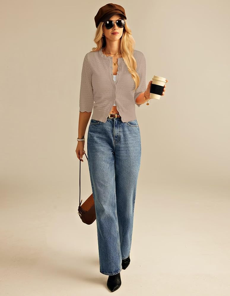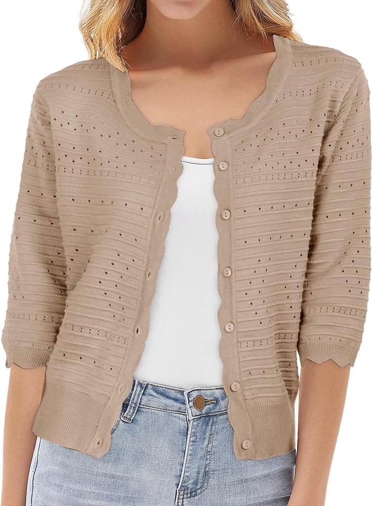 Comfortable Fit: Designed with 3/4 short sleeves, this women's cardigan,button up sweater offers a comfortable and breathable fit, making it ideal for transitional weather and all-day wear.