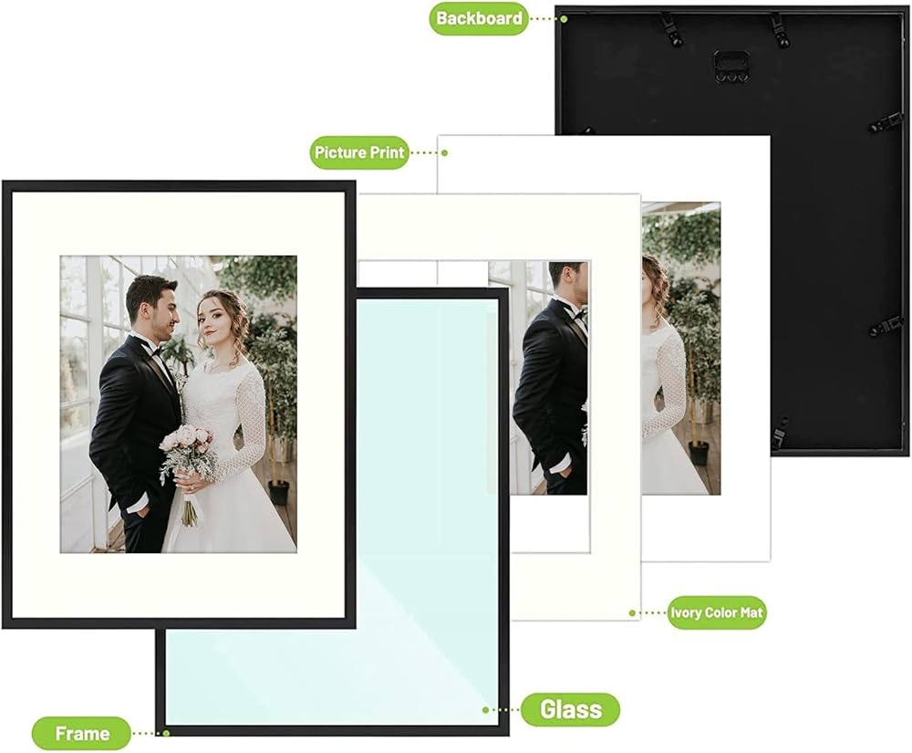 Can Display Pictures: 5x7, 8x10 & 11x14 (Without Mat) or 4x6, 5x7 & 8x10 (with Ivory Color Mat)