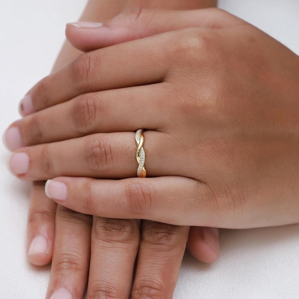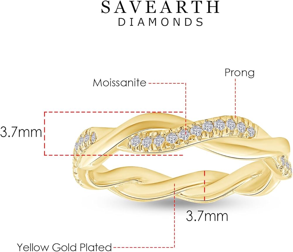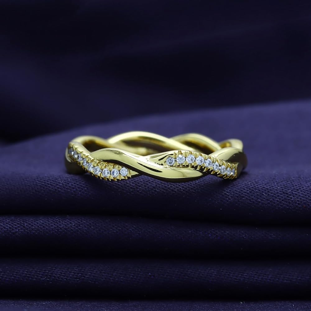 Jewelry has the power to be this one little thing that can make you feel unique, 18K Gold Plated Moissanite Diamond Twisted Rope Eternity Band for Women | Wedding Band Rings Jewelry Gifts For Her (0.15 Ctw). Absolutely a great gift to express your love for your mother, friend, wife, valentine, family or friend. Great gifts on Mother 's Day, Wedding, Anniversary day, Valentine's Day or Christmas Day