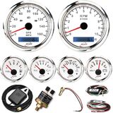 Measuring Range: Speedometer: 0 - 160 MPH, Tachometer: 0 - 10000 RPM, Fuel Level: E - F & Resistance 0 - 90 ohms, Oil Pressure: 0 - 150 PSI, Water Temperature: 100 - 250 °F, Volt: 8 - 18 V.
