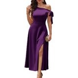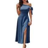 With the gradual arrival of summer, we not only want to enjoy the coolness of the summer, but also think about how to dress to be more beautiful. This slit formal dress is simple and romantic as a fashion item for women, bringing you beauty and confidence. You must come to feel the charm of one-shoulder dresses!