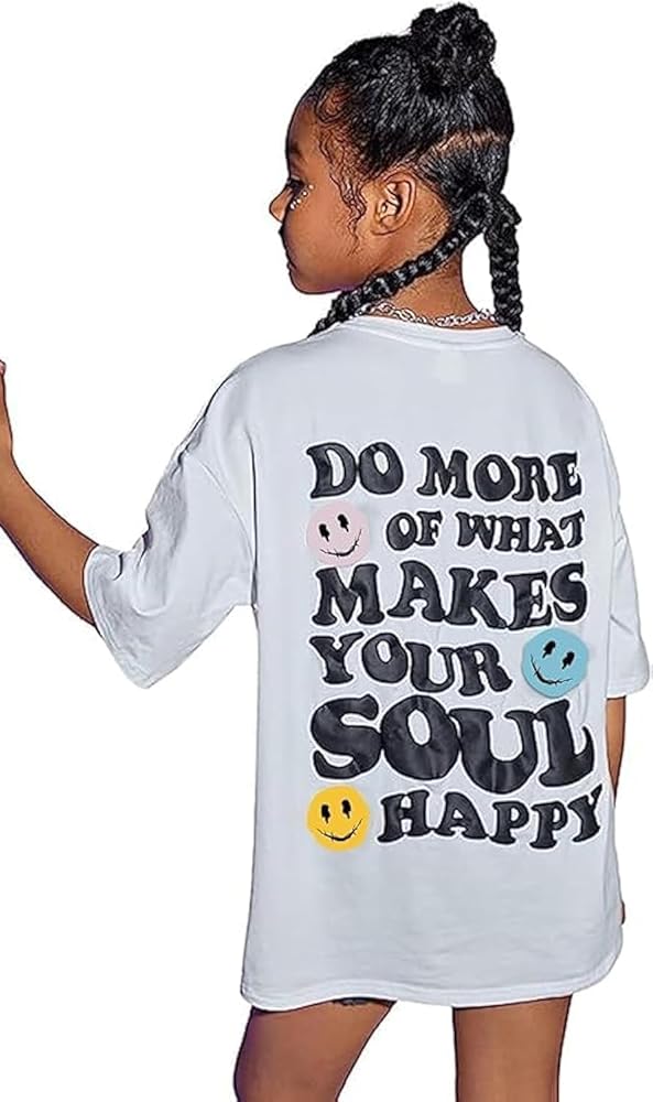 Eymitory Girl's Letter Print Graphic T Shirts Short Sleeve Cute Shirts Oversized Loose Tee Summer Tops