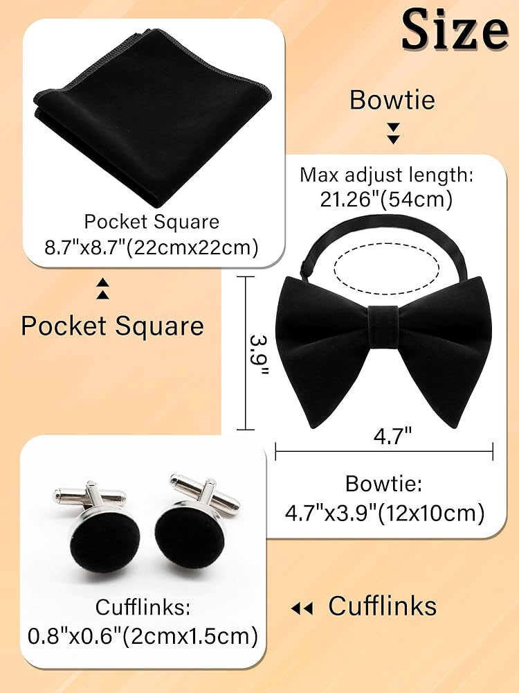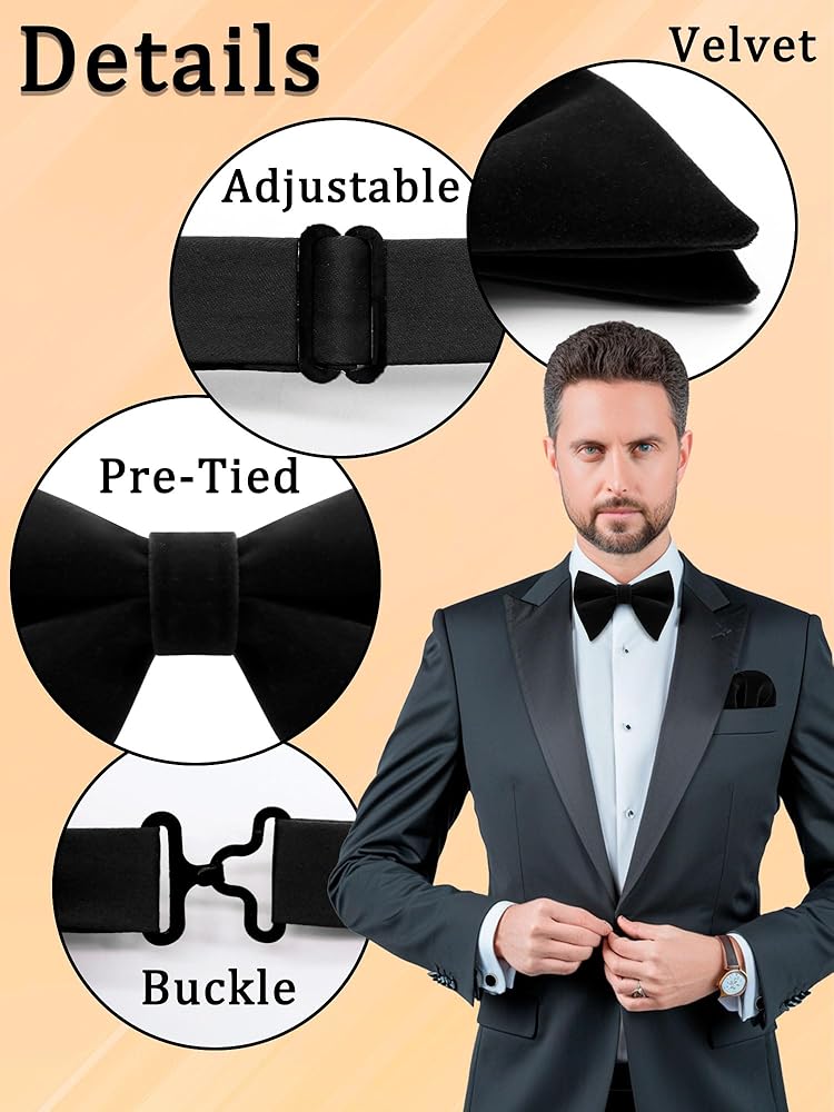 Lavish Velvet Bow Ties Set: The pre-tied bow tie set adds a touch of opulence with its rich velvet fabric; Whether you choose the classic black velvet bow tie or a bold color, this bow tie set is perfect for any formal occasion