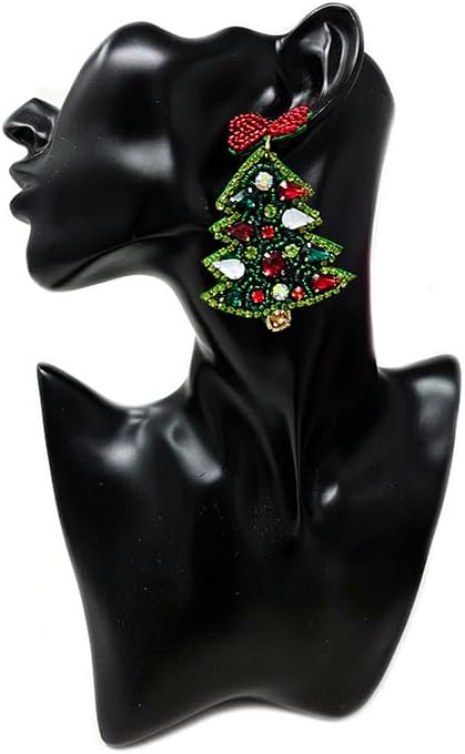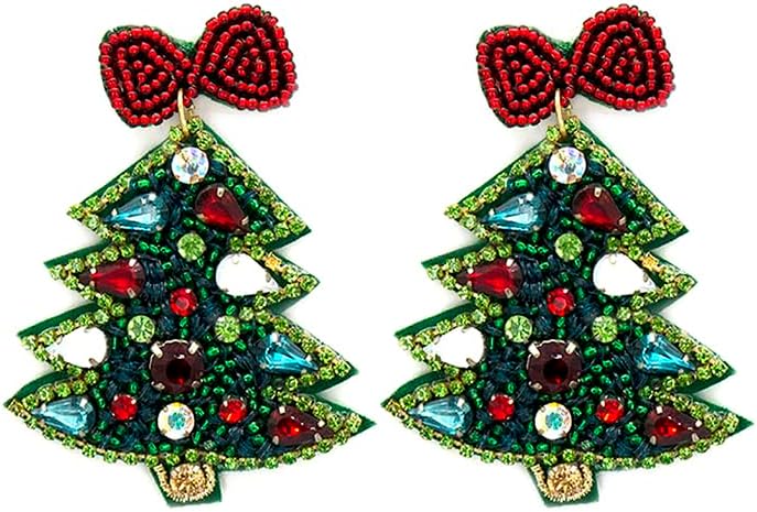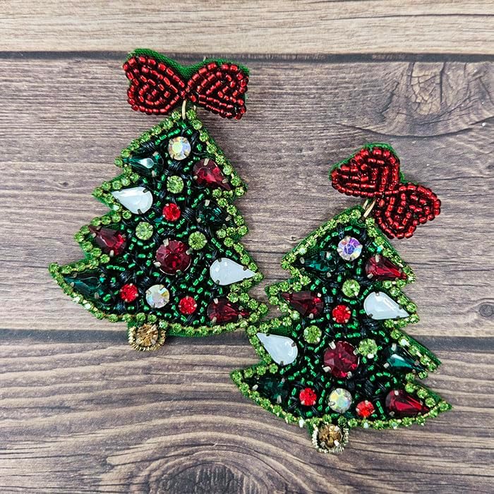 Beaded Christmas Tree Post Earrings; Handmade Christmas Earrings Holiday